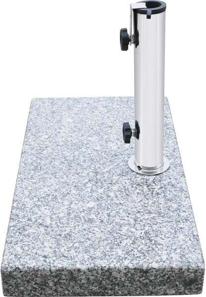 Sprytny stojak na parasole z serii Granada jest szczególnie odpowiedni na twój balkon dzięki przemyślanej konstrukcji. Podstawa stojaka wykonana jest z litego granitu i waży 20 kg, dzięki czemu jest stabilna i zapewnia parasolowi stabilny uchwyt. Ma kształt prostokąta i posiada adapter, który jest odpowiedni dla drążka o średnicy od 32 mm do 38 mm. Stojaka na parasole można używać do parasoli o wymiarach do 200 x 200 cm (szer. X gł.). Przydatny uchwyt transportowy jest również wygodny.