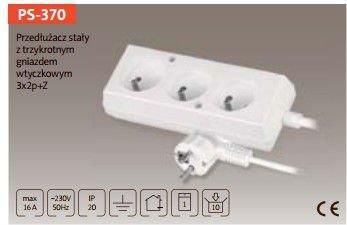 Przedłużacz potrójny z uziemieniem w kolorze czarnym. Długość: 5 metrów Model: PS-370 / 5m czarny Parametry przedłużacza Przewód: OMY 3x1mm² Wtyk: zalewany (nierozbieralny) Gniazdo: nitowane (nierozbieralne) Gniazda z przesłonami torów prądowych Napięcie maksymalne: 250V Obciążenie maksymalne: 10A (2300W) Z uziemieniem Do użytku wewnętrznego Produkt polskiej produkcji. Stopień ochrony w oferowanym przedłużaczu to IP20, który zabezpiecza nas przed dotknięciem elementów niebezpiecznych. Gniazda wyposażone są w specjalne zabezpieczenia przed dziećmi. Produkt pochodzenia polskiego spełnia europejskie normy CE, posiada certyfikaty oraz świadectwa zgodności. Prosty i funkcjonalny przedłużacz przystosowany do użytkowania we wszystkich gniazdach, umożliwia podłączenie trzech wtyczek. Posiada dodatkowe otwory montażowe pozwalające przykręcić przedłużacz do powierzchni. Jego minimalistyczny wygląd i prosta konstrukcja sprawdzi się doskonale w domu i w biurze. Producentem produktu jest firma Jonex.