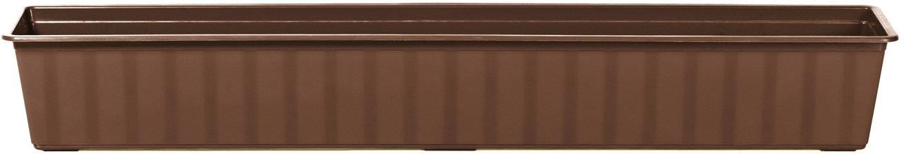 Klasyczna, lekka skrzynka balkonowa AGRO w kolorze brązowym z delikatnymi zdobieniem w formie lśniących pasów. Wymiary : długość 100 cm, szerokość 18 cm , głębokość 14 cm . Do skrzynki można dokupić osobno podstawkę AGRO oraz plastikowy uchwyt w tym samym kolorze.