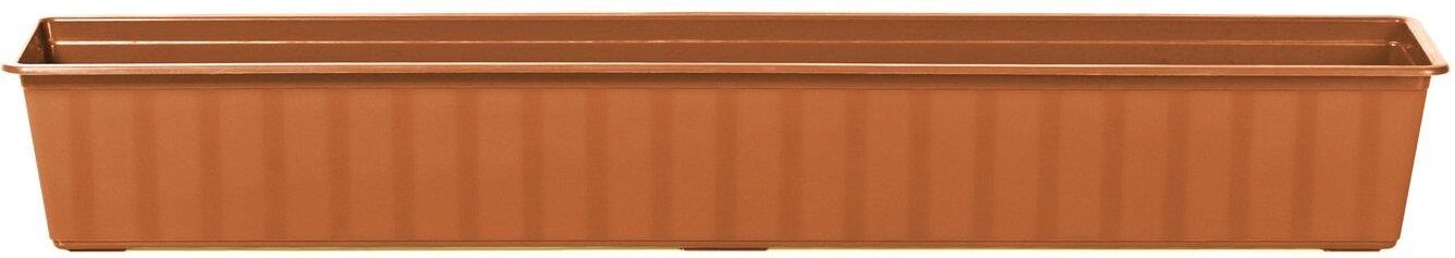 Skrzynka balkonowa 100cm terakota Klasyczna, lekka skrzynka balkonowa AGRO w kolorze terakota z delikatnymi zdobieniem w formie lśniących pasów. Wymiary : długość 100 cm, szerokość 18 cm , głębokość 14 cm . Do skrzynki można dokupić osobno podstawkę AGRO oraz plastikowy uchwyt w tym samym kolorze.