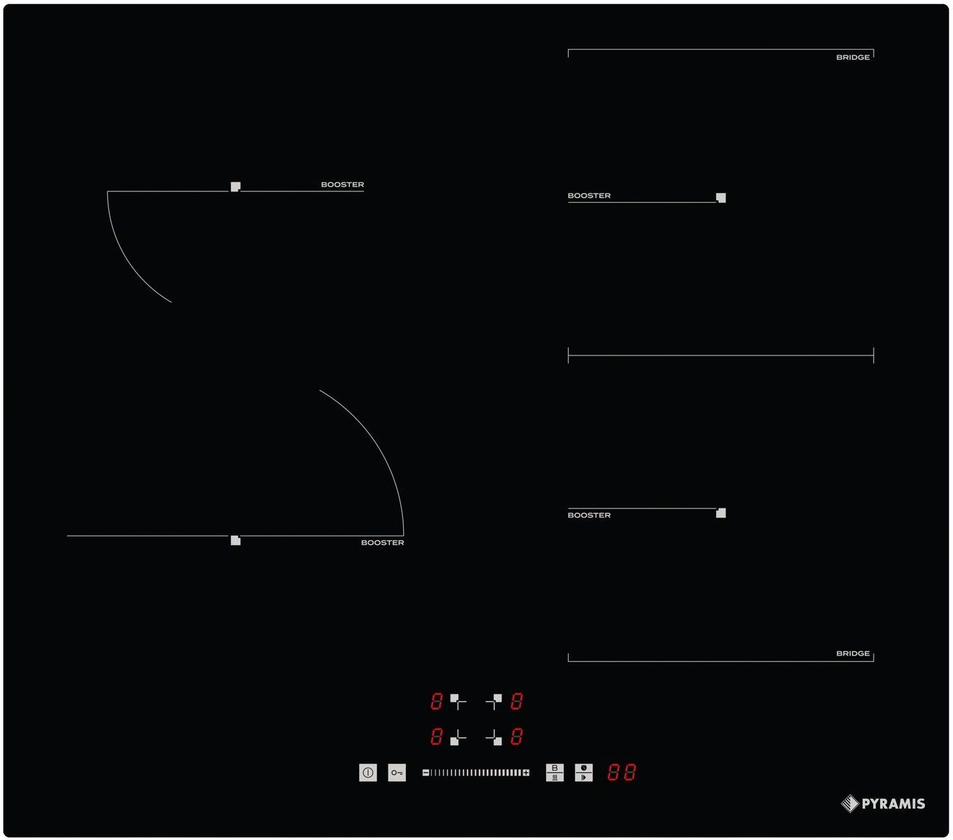 PŁYTA INDUKCYJNA SZKLANA CZARNA PHI62432FMB 7,2 kW 4STREFY + BRIDGE PYRAMIS PŁYTA INDUKCYJNA PYRAMIS PHI62432FMB CZARNA Płyta indukcyjna to nowoczesna i energooszczędna alternatywa dla tradycyjnych kuchenek gazowych lub elektrycznych. Gładka, szklana powierzchnia to ogromne udogodnienie podczas codziennych czynności kuchennych. Bezramkowa faktura gwarantuje łatwość utrzymania czystości wokół akcesorium i na blacie roboczym. Model wyposażony jest w wiele funkcji ułatwiających codziennie gotowanie, a także gwarantujących bezpieczeństwo w kuchni. Minimalistyczny design umożliwia wszechstronność aranżacyjną i połączenie płyty z wieloma stylami wnętrzarskimi. SPECYFIKACJA I DANE TECHNICZNE Typ urządzenia: płyta indukcyjna Sposób montażu: do zabudowy Wymiary: 59 cm x 52 cm x 6 cm Kolor: czarny Materiał wykonania płyty grzewczej: szkło Materiał wykonania ramy: bezramkowa Ilość pól grzewczych: 4 + Bridge Ilość stopni podgrzewania: 9 + Booster Rodzaj sterowania: dotykowe (Slider) + OSD Booster: tak Timer: tak (dla każdego pola grzewczego) Moc przyłączeniowa: 7,2 kW Kabel zasilający: w zestawie (1,3 m) Dodatkowe funkcje: bridge function (łączenie pół), timer, pauza, keep warm function (utrzymywanie ciepła), heat control (wskaźnik ciepła resztkowego), child lock (zabezpieczenie przed dziećmi) Kraj produkcji: Grecja GŁÓWNE CECHY PRODUKTU FUNKCJA BOOSTER Podczas gotowania wystarczy wcisnąć odpowiedni przycisk z funkcją Booster, a moc grzania zwiększy się o kilkadziesiąt procent. Umożliwi to zdecydowanie szybsze i wydajne gotowanie. Dodatkowo tak przygotowane potrawy zachowają znacznie więcej cennych wartości odżywczych. Funkcja dostępna jest dla wszystkich pól grzewczych. BRIDGE FUNCTION (ŁĄCZENIE PÓŁ) Dzięki funkcji Bridge możesz połączyć dwa pola w jedno i gotować w dużych naczyniach na obu jednocześnie. STEROWANIE DOTYKOWE (SLIDER) + OSD Sterowanie dotykowe oferujące 9 poziomów mocy + Booster. Płyta wyposażona jest również w Slider, który pomoże Ci szybko i precyzyjnie ustawić moc grzejną. Dodatkowo obsługę pól grzejnych ułatwi menu z parametrami, dostępne na wyświetlaczu urządzenia. TIMER (WYŁĄCZNIK CZASOWY) DLA KAŻDEGO POLA GRZEWCZEGO Funkcja umożliwia w łatwy i skuteczny sposób kontrolować czas gotowania, niezależnie dla każdego pola grzewczego. Po upłynięciu ustawionego czasu pole grzewcze automatycznie wyłączy się i zostaniesz powiadomiony sygnałem dźwiękowym o jego upłynięciu. NOWOCZESNA FUNKCJA PAUZY Funkcja ta pozwala na bardzo szybkie wyłączenie wszystkich pól grzewczych lub zmniejszenia ich do poziomu 1 za pomocą jednego dotknięcia. Praktyczna i zdecydowanie potrzebna funkcja pozwalająca czasowo wstrzymać działanie całej płyty. Z pewnością przyda się, gdy musicie na chwilę wyjść z kuchni. KEEP WARM FUNCTION (FUNKCJA UTRZYMYWANIA CIEPŁA) Dzięki tej funkcji można utrzymać potrawę w odpowiedniej temperaturze przez dłuższy czas. Teraz nawet spóźnialscy będą mogli liczyć na ciepły obiad bez konieczności odgrzewania. HEAT CONTROL (WSKAŹNIK CIEPŁA RESZTKOWEGO) Aby zwiększyć ochronę użytkowników płyta informuje, które pola są jeszcze gorące. CHILD LOCK Płyta oferuje funkcję blokady, która pozwala zagwarantować maksymalny poziom bezpieczeństwa dla całej rodziny. Zabezpiecza płytę przed przypadkowym włączeniem przez dziecko. SPECYFIKACJA I DANE TECHNICZNE 4 strefy gotowania + Bridge Przedni lewy: Ø 210 mm - 2000 W / 2300 W (Boost) Tylny lewy: Ø 160 mm - 1200 W / 1500 W (Boost) Przedni prawy: Ø 190x190mm - 2000W / 2800W (Boost) Tylny prawy: Ø 190x190mm - 1500W / 2000W (Boost) Prawa strefa połączona (Bridge): Ø 190x385mm - 3000W / 3600W (Boost) Power Management – możliwość podłączenia płyty do jedno i trójfazowej instalacji elektrycznej. Pobór mocy (2.9kW - 3.6kW - 4.8kW - 5.9kW - 7.2kW) WYMIARY PRODUKTU Wymiary produktu (szer. x gł. x wys.): 590 mm x 520 mm x 60 mm Wymiary wycięcia w blacie (szer. x gł.): 565 mm x 495 mm