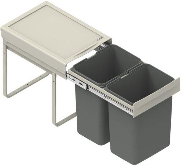 Kosz na śmieci wysuwany 40 2 x 20 l Rejs Wysokość (w cm): 44 Szerokość (w cm): 35 Głębokość (w cm): 48.5 Pojemność całkowita (w l): 40 Kolor: Srebrny -mocowanie frontu sprzedawane oddzielnie, szerokość: 35 cm wysokość: 44 cm głębokość: 48,5 cm. Do frontu 40cm. - prowadnica kulkowa z nadwysuwem i …
