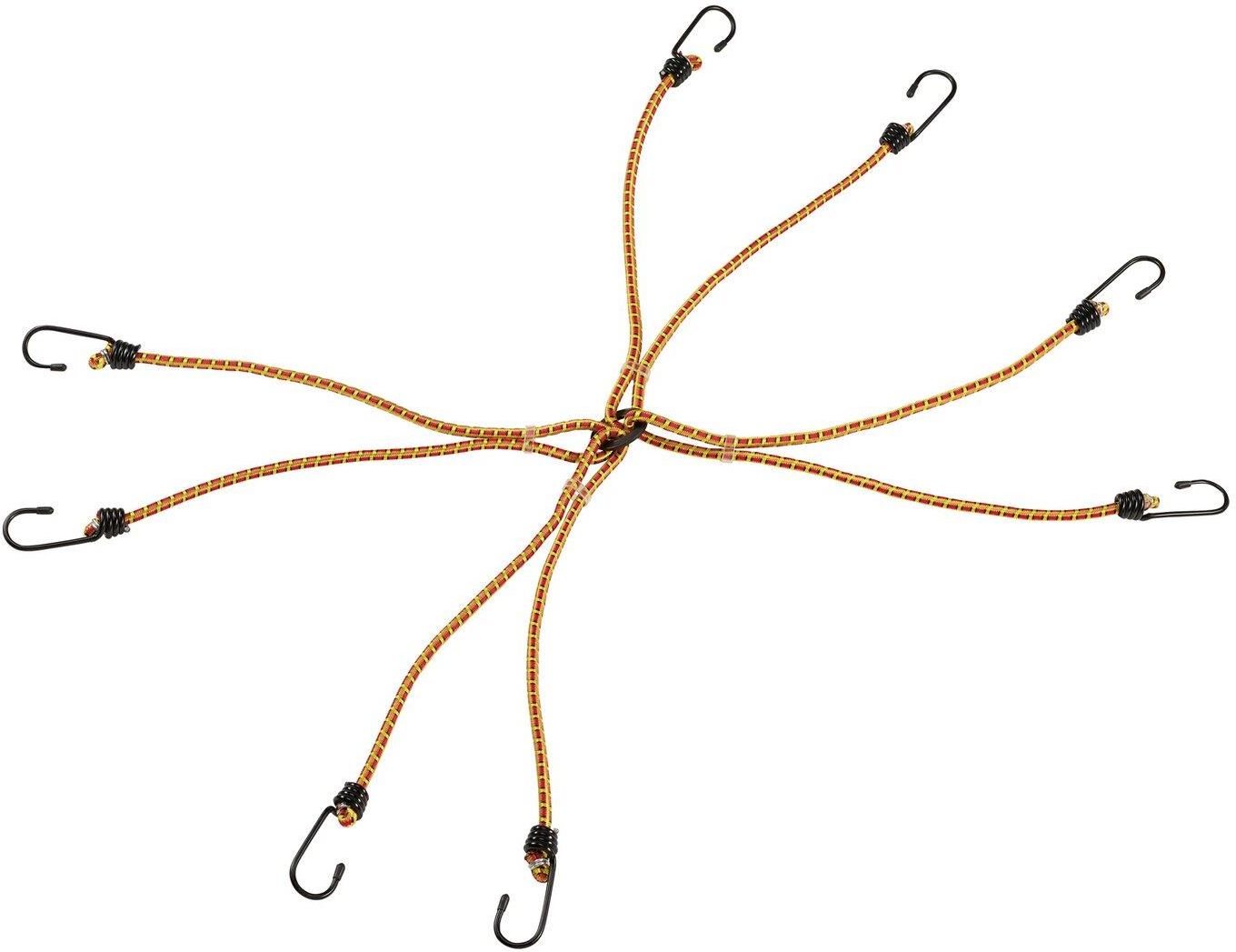 Guma do mocowania bagażu 80 cm.Wykonana z bardzo mocnego materiału ośmioramienna elastyczna linka o średnicy 8 mm skutecznie umocuje lekki bagaż. Składa się ze spiętych ze sobą 4 odcinków, co daje 8 ramion.Każde z ramion ma na końcach bardzo solidny hak ze stali powlekanej tworzywem sztucznym.W stanie spoczynku guma ma 80 cm długości (z hakami).