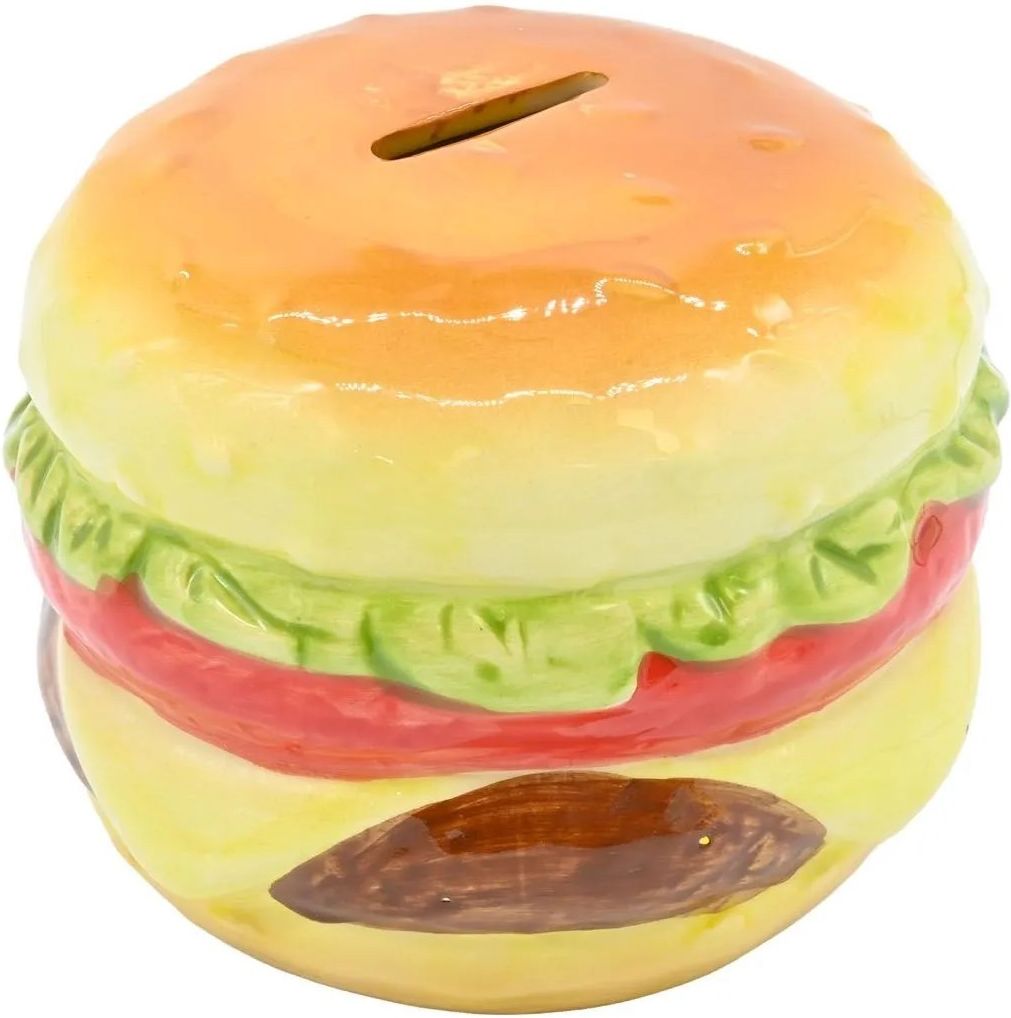 Skarbonka ceramiczna w kształcie hamburgera wykonana jest z trwałej, lakierowanej ceramiki i posiada otwór w górnej części do wkładania monet. Dzięki realistycznemu wyglądowi stanowi nietuzinkową dekorację wnętrz.