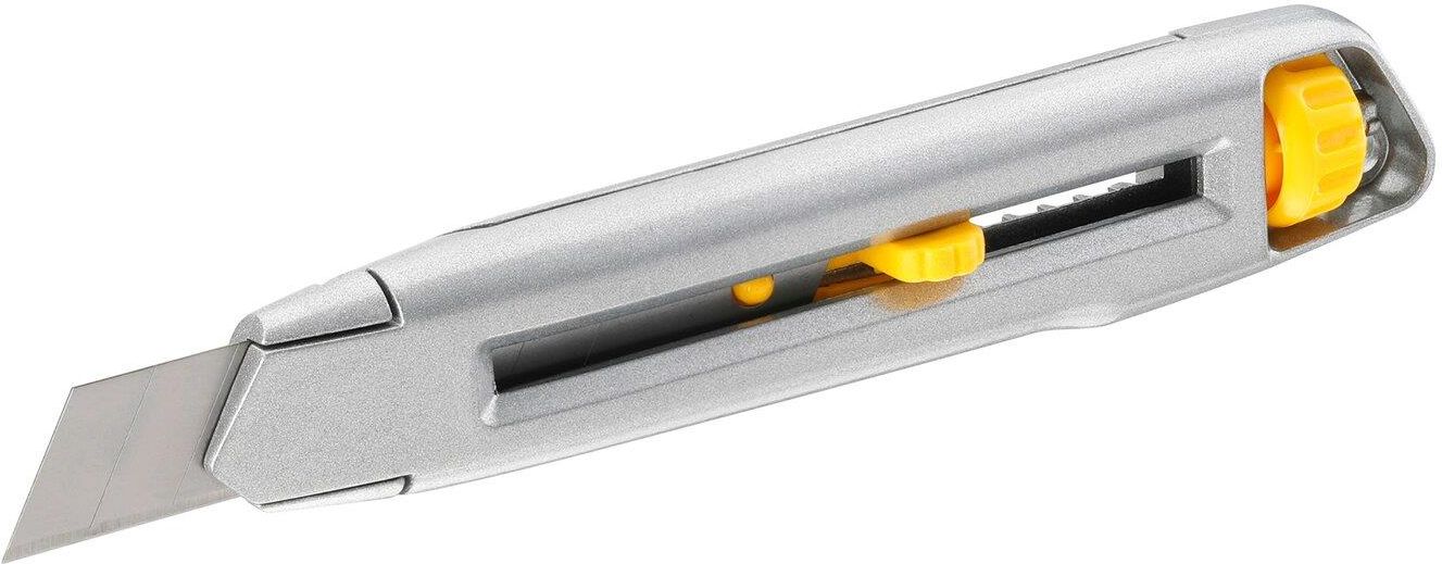 STANLEY NOŻYK METALOWY LEKKI INTERLOCK, OSTRZE ŁAMANE 18MM [K] Nóż interlock z łamanym ostrzem 0-10-018 Stanley ma metalowy korpus. Posiada opatentowany system klinowego blokowania ostrza. Samo ostrze jest bardzo łatwe w wymianie - wystarczy ułamać zużytą końcówkę. Obsługuje ostrza o długości 9 mm i 18 mm Dane techniczne 0-10-018 Stanley: Długość ostrza: 9 - 18 mm Szerokość: 18 mm Długość: 165 mm STANLEY to jeden z najpopularniejszych znaków firmowych na świecie. STANLEY to rozpoznawany amerykański producent i dostawca wysokiej jakości markowych narzędzi ręcznych, drzwi, systemów mocujących, systemów magazynowania oraz elektronarzędzi i elementów hydraulicznych do użytku profesjonalnego, przemysłowego, a także dla amatorów.