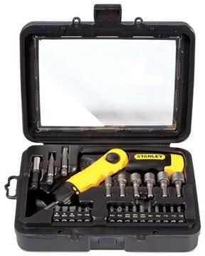 24 elementowy zestaw bitów 0-63-022 firmy Stanley. Dedykowany do użytku w domu lub przydomowym garażu. Wykonanie bitów ze stali chromowo-wanadowej zapewnia dużą wytrzymałość oraz mniejsze zużycie. Zestaw zawiera: - Pł długa 6 mm, Pł: 5, 6, 7 mm, - Ph długa 2 pkt, Ph: 1, 2, 3 - Torx: T10, T15, T20 - Sześciokątne: 3, 4, 5 mm - Klucze nasadowe: 5, 6, 8, 9 10, 11 mm - przedłużka - Uchwyt samozaciskowy - Wkrętak na wymienne końcówki z grzechotką - Plastikowa walizka