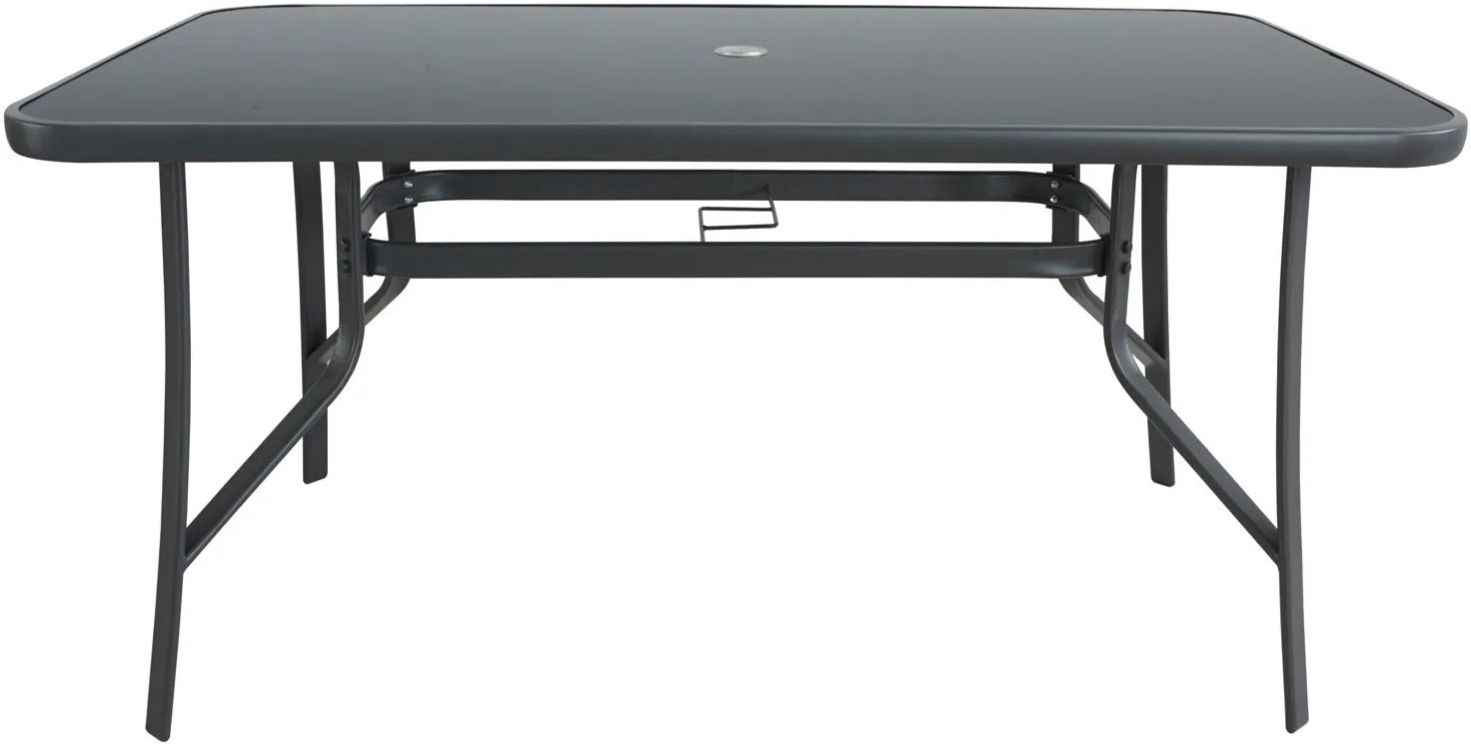 Stół ogrodowy CINO to idealne rozwiązanie na rodzinne obiady na świeżym powietrzu, spotkania z przyjaciółmi przy grillu czy relaksującą kawę w ogrodzie. Oferuje komfortowe miejsce aż dla sześciu osób. Stelaż mebla został wykonany ze stali lakierowanej proszkowo, dzięki czemu będzie służył przez wiele sezonów. Antracytowy kolor konstrukcji i blatu nadaje mu nowoczesny charakter, harmonijnie komponując się zarówno z klasycznymi, jak i nowoczesnymi aranżacjami ogrodowymi. Blat stołu został wykonany ze szkła hartowanego, które jest odporne na zarysowania i łatwe w utrzymaniu - wystarczy przetrzeć wilgotną ściereczką, aby przywrócić mu czystość i blask. Dodatkowym udogodnieniem jest otwór na parasol ogrodowy o średnicy 60 mm, umożliwiający szybki montaż parasola i zapewniający przyjemny cień w słoneczne dni.
