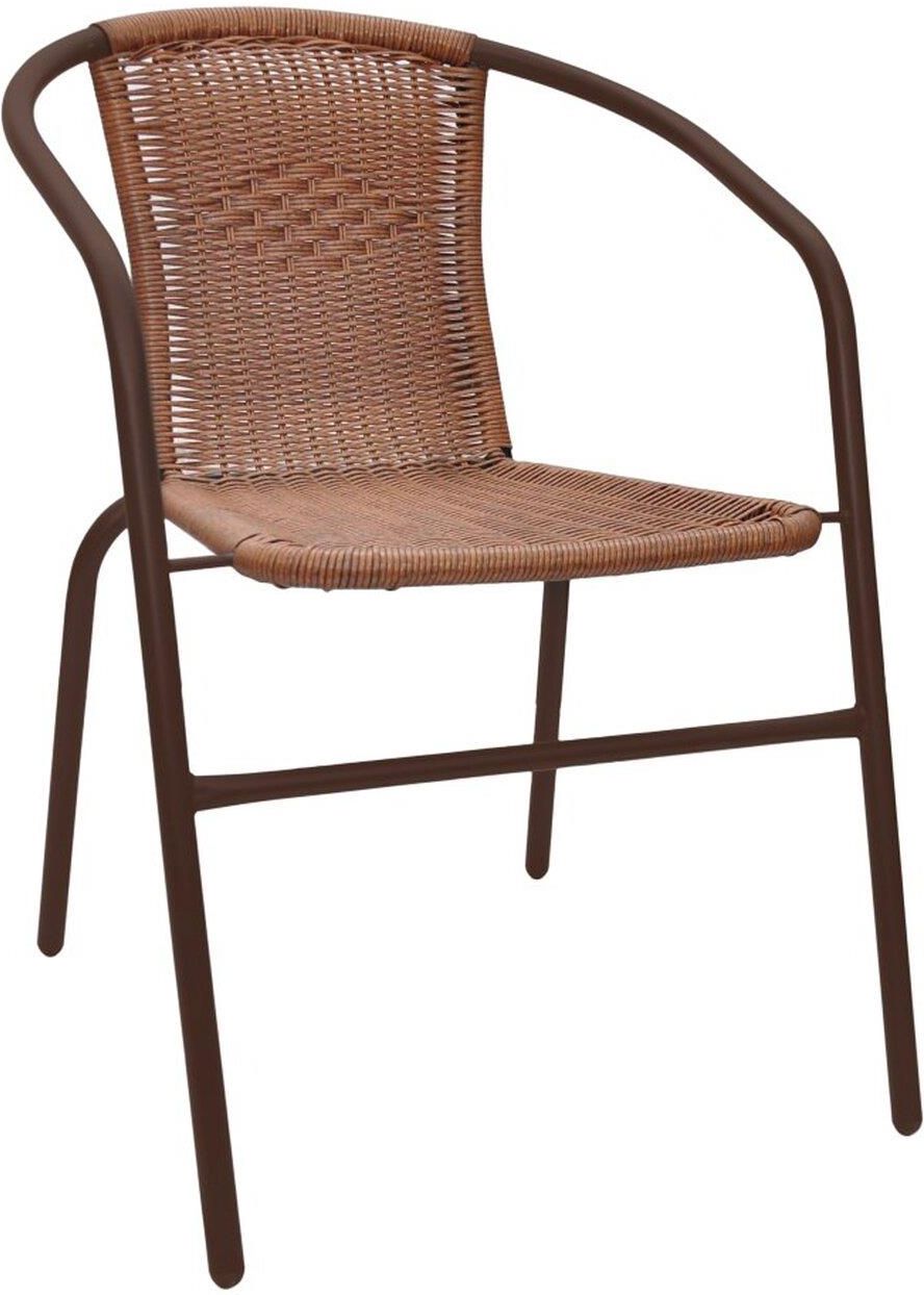 Krzesło BISTRO brązowe Krzesło BISTRO ozdobi każdy balkon czy taras i pozwoli Ci poczuć klimat paryskich kawiarenek. Stelaż krzesła wykonano ze stali malowanej metodą proszkową celem zabezpieczenia przed korozją. Siedzisko krzesła wykonano z plecionki z brązowego polirattanu. Polirattan jest materiałem wyjątkowo odporny na warunki atmosferyczne, zarówno deszcz i promienie UV. Nogi krzesła wykończone nakładkami zabezpieczającymi chronią podłoże przed uszkodzeniem Wszystkie te cechy sprawiają, że krzesło jest nie tylko eleganckim dodatkiem do ogrodu, ale jest też stabilne i.trwałe. Dzięki temu możesz cieszyć się nim przez długie lata. Krzesła mają możliwość sztaplowania, więc nie będą zajmować dużo miejsca, kiedy zechcesz je schować. Stabilne i bardzo wygodne, będą idealnie dopasowane są do stolika BISTRO, który znajdziesz w naszej ofercie. Skomponuj swój zestaw mebli BISTRO - Stolik + 4 krzesła w atrakcyjnej cenie 284,95 PLN i ciesz się pięknym, klimatycznym ogrodem. Wymiary:54x56x73 cm