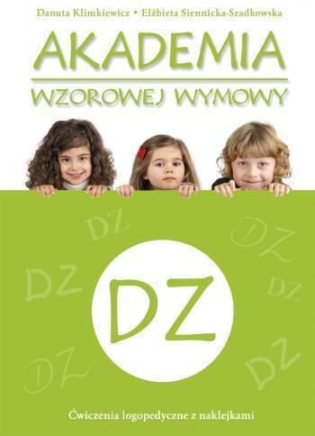 Zeszyt ćwiczeń logopedycznych przeznaczony do pracy terapeutycznej z dzieckiem w wieku przedszkolnym i wczesnoszkolnym, które nieprawidłowo wymawia głoskę DZ. Różnorodne ćwiczenia zostały zaproponowane w formie językowej zabawy. Dziecko słucha, głośno powtarza za dorosłym, różnicuje, dopasowuje, rysuje, koloruje, zaznacza każdą głoskę innym kolorem, wreszcie czyta i pisze. "Autorki "Akademii Wzorowej Wymowy", Danuta Klimkiewicz i Elżbieta Siennicka-Szadkowska, stworzyły ciekawą książeczkę dla dzieci, które mają problemy z wypowiadaniem trudnych głosek. Jako sojuszników w ćwiczeniach wybrały rodziców. Jasno podają zasady, którymi należy się kierować w codziennej pracy z dzieckiem. Zaletą publikacji są oryginalne wierszyki i jednoznaczne obrazki. Zadania są ułożone od najłatwiejszych do trudniejszych, co jest zgodne z zasadami prawidłowej terapii. Ten sposób ułożenia ćwiczeń pozwala na korzystanie z książeczki przez rodziców. Zadowoli ona również specjalistów poszukujących inspiracji. To odpowiednie lekarstwo na kłopoty z mówieniem do zażywania jeden raz dziennie. Polecam." mgr Marzena Dąbrowska psycholog - logopeda, Uniwersytet Jagielloński - Katedra Polonistycznej Edukacji Nauczycielskiej