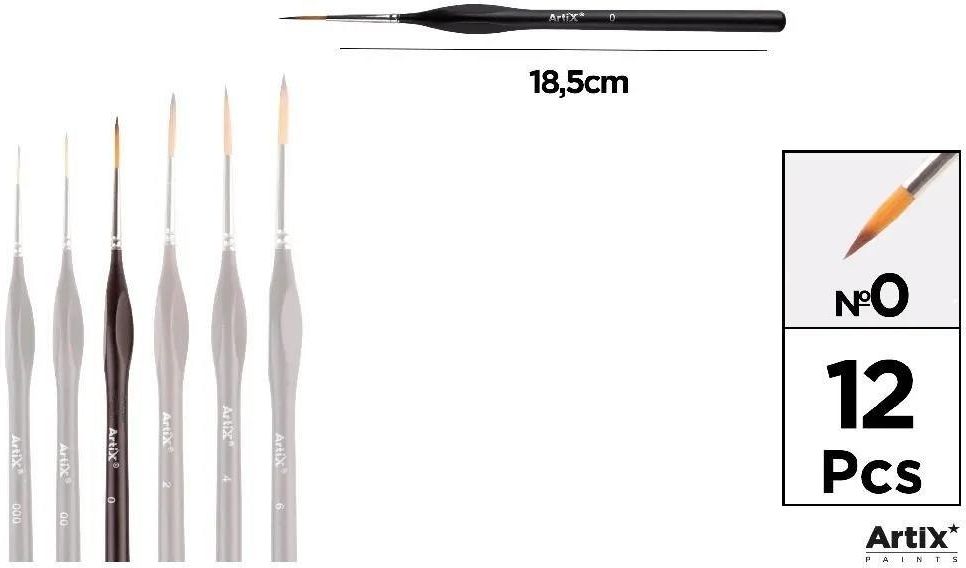 Artix Pędzel Ergonom Malarski Cienki Liniowy 0 12Szt Swarzędz
