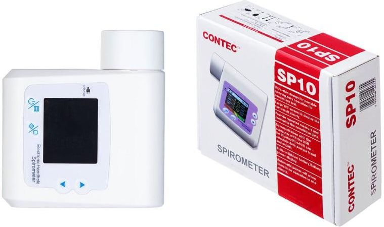 Spirometr SP10 to podręczne urządzenie do pomiaru parametrów wentylacji płuc. Urządzenie przeznaczone do użytku klinicznego (w warunkach szpitalnych i ambulatoryjnych). Jest też idealnym narzędziem samokontroli dla chorych z astmą i przewlekłą obturacyjną chorobą płuc (POChP). Kieszonkowe rozmiary, ładowana bateria oraz prosta obsługa i wbudowany wyświetlacz umożliwiają zastosowanie urządzenia w każdych warunkach i natychmiastowy odczyt wyników. Dedykowany program na PC pozwala archiwizację wyników, analizię oraz wydruk. 1.8” wyświetlacz TFT 160×128 pikseli prosta obsługa pomiar typowych parametrów spirometrycznych koniecznych w diagnostyce i monitorowaniu chorób płuc wykreślanie krzywej objętości względem czasu wbudowana pamięć flash możliwość załadowania danych i analizy w programie komputerowym dołączonym do urządzenia przyjazny interfejs oprogramowania PC automatyczne wyłączanie po 1 min do zestawu dołączony jest jeden ustnik do sterylizacji Specyfikacja: wymiary 97mm x 89mm x 36mm; waga 150g zakres pomiaru objętości: 10l dokładność pomiaru objętości: 3% albo 50ml zakres pomiaru przepływu: 16l/s dokładność pomiaru przepływu: 5% albo 200ml/s zasilanie: akumulator litowy 3.7V