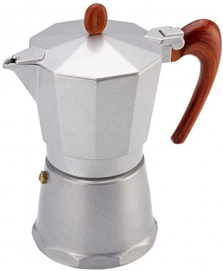 Kawiarka ciśnieniowa SPLENDIDA o pojemności 6 espresso, około 300 ml kawy. Składa się z trzech części: - dolnego zbiornika na wodę, który posiada zawór bezpieczeństwa, - lejka z sitkiem, - górnego pojemnika na zaparzoną kawę. Ekspres wykonany z wysokiej jakości aluminium. Posiada tradycyjny kształt oraz ergonomiczny, ebonitowy uchwyt imitujący drewno. Przystosowany do kuchni elektrycznej, ceramicznej i gazowej. Kawa przygotowana w ten sposób jest mocna i aromatyczna.