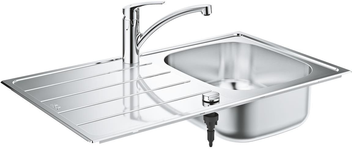 Grohe K200 zlewozmywak ze stali szlachetnej 31552SD1 model: K200 45-S 86/50 1.0 odwracalny typ montażu: wpuszczany w blat materiał: stal nierdzewna AISI 304 (V2A) grubość materiału: 0,6 mm GROHE Long-Life trwała powłoka wykończenie: Satin Finish GROHE Whisper redukcja hałasu minimalna długość szafki: 450 mm wymiary: 860 x 500 mm 1 komora: 350 x 400 x 160 mm GROHE FastFixation system szybkiego montażu montaż zlewozmywaka możliwy z lewej lub z prawej strony wycięcie: 842 x 482 mm wycięte otwory: 2 x 35 mm odpływ: Ø 3,5"/90 mm z koszyczkiem na odpady i automatycznym opróżnianiem w komplecie: automatyczny zestaw odpływowy z syfonem, sitko na odpadki, zestaw montażowy opcjonalnie: automatyczny odpływ (40 986 SD0) Ilość elementów mocujących zlewozmywak (wpuszczany w blat): 14 Kolor: chrom Kod EAN: 4005176623714 Numer katalogowy: 31552SD1