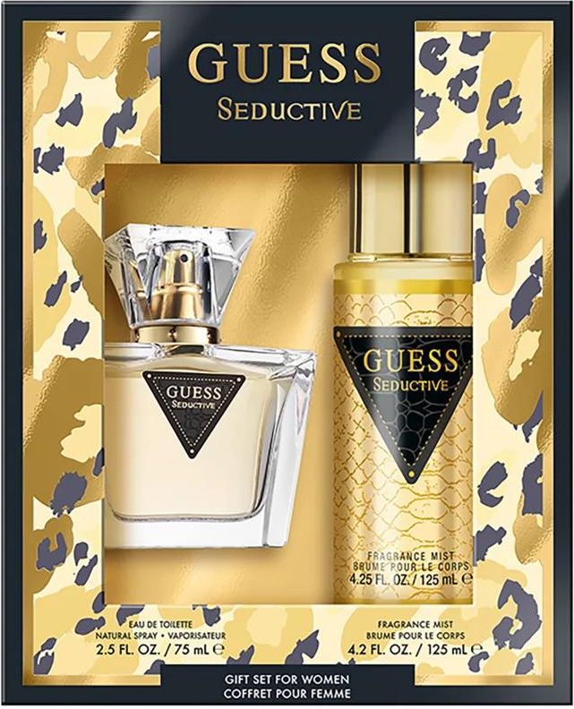 Guess Seductive For Women, 1 szt., Zestawy dla kobiet dla kobiet, Luksusowy zapach to zawsze właściwy wybór dla tych, którzy pragną podarować prawdziwe szczęście, a zestaw perfum damskich Guess Seductive For Women w pięknym opakowaniu to radość ukryta w wielu flakonikach. Postaw na czar idealnie dopasowanego zestawu, który pokocha każda kobieta. Zawartość zestawu: Guess Seductive woda toaletowa 75 ml Guess Seductive perfumowany spray do ciała 125 ml Właściwości: doskonały pomysł na prezent wysokiej jakości wykonanie sprawi radość każdej kobiecie zestaw zachwyca już na pierwszy rzut oka pięknym opakowaniem zestaw zawiera perfumy i dodatki kosmetyczne z tej samej linii