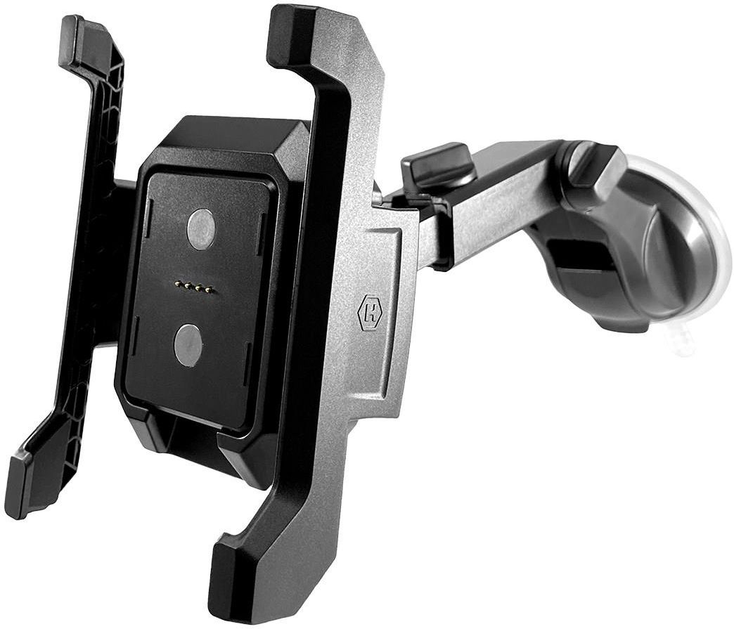 HAMMER MOUNT Praktyczne i uniwersalne mocowanie! HAMMER MOUNT to wszechstronny uchwyt na telefon z szerokim zakresem regulacji. W zestawie znajdują się dwa rodzaje mocowań, które zapewniają wiele możliwości montażu w różnych miejscach. Uchwyt łączy w sobie charakterystyczną dla urządzeń HAMMERA niezawodność, praktyczność i niepowtarzalny design. Jeden uchwyt wiele możliwości Dwa rodzaje mocowań - samoprzylepna żelowa przyssawka i zacisk - umożliwiają użycie uchwytu w samochodzie, na rowerze, motorze, hulajnodze, wózku, na biurku lub szybie w pracy i wielu innych miejscach. Zastosowań jest bardzo dużo. Wiele możliwości regulacji Uchwyt posiada szeroki zakres różnych konfiguracji. Dwupunktowa regulacja ramienia, możliwość dopasowania jego długości oraz głowica 360 stopni zagwarantują bezpieczne i wygodnie ustawienie Twojego telefonu w każdej sytuacji. Wygodny w obsłudze Dzięki przemyślanej konstrukcji uchwytu, wszystko będziesz w stanie ustawić jedną ręką. To wygodne i bezpieczne rozwiązanie. Łatwy dostęp do ładowania Uchwyt został zaprojektowany z myślą o wygodzie – specjalne wcięcie na kabel umożliwia łatwe i szybkie podłączanie telefonu do zasilania. Dodatkowo, dzięki zamontowanym pinom, można go wykorzystać do ładowania HAMMERÓW z serii EXPLORER. Doskonała przyczepność Tego uchwytu nie trzeba będzie co chwilę poprawiać. Żelowa przyssawka pewnie trzyma się na płaskich powierzchniach, doskonale przylega zarówno do deski rozdzielczej, przedniej szyby pojazdu, jak i ścian i blatów w domu lub biurze. Dopasowany do każdego rozmiaru Model HAMMER MOUNT pozwala na zamocowanie urządzeń o rozmiarach ekranu od 4" do 7". Dzięki temu mamy gwarancję, że zmieści się tam zarówno nasz HAMMER, jak i niemal każdy inny smartfon.