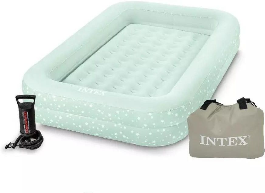 Podróże z małymi dziećmi - dalsze i bliższe - wymagają od opiekunów odpowiedniego przygotowania. Turystyczne wojaże wymagają posiadania odpowiedniego ekwipunku. Propozycja marki INTEX zadowoli najbardziej wymagających podróżników. Nasz sklep internetowy oferuje Państwu materac flokowany z ramą dmuchaną, który doskonale sprawdzi się w roli przenośnego łóżka podczas wyjazdu, ale nie tylko. Okazać może się również świetnym elementem wyposażenia w pokoju dziecięcym. Oferowany materac przeznaczony jest dla dzieci w wieku od 3 do 8 lat. Produkt wykonany został z trwałego tworzywa PCV. Całość składa się z dwóch części: materaca wewnętrznego i ramy z podłogą. Dla komfortu najmłodszych materac pokryty został delikatnym welurowym obiciem w kolorze beżowym. W razie potrzeby można go wyprać. Nadmuchiwana rama zapewnia bezpieczeństwo i stabilność, a specjalnie wyprofilowany środek chroni przed ewentualnym wypadnięciem dziecka podczas snu. Po wyjęciu materaca wewnętrznego rama może służyć jako kojec do zabawy dla najmłodszych dzieci. Materac przeznaczono wyłącznie do użytku wewnętrznego. Do zestawu, oprócz materaca, dołączono także pompkę tłokową oraz wygodną torbę do przechowywania. Wymiar materaca: 107 x 168 x 25 cm. Wymiar powierzchni do spania: 71 x 132 cm