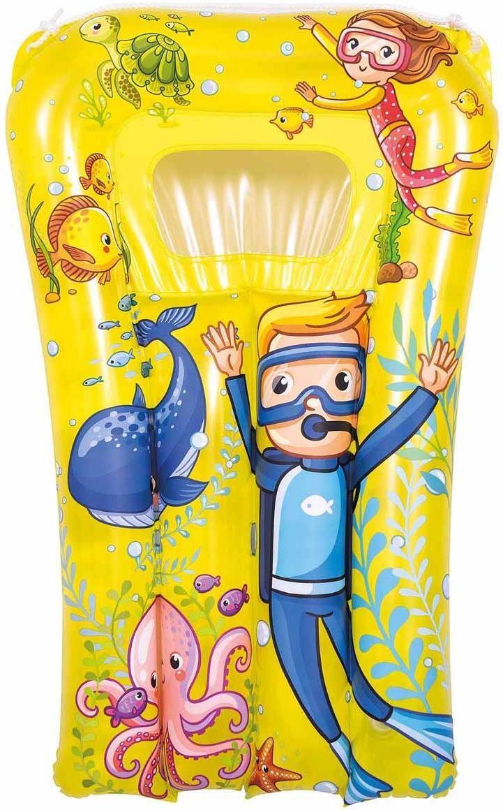 MATERAC PLAŻOWY Z OKIENKIEM PODWODNY ŚWIAT 74x48CM 37591 - ŻÓŁTY Szukasz małego materaca do relaksu w basenie na plaży lub nad jeziorem dla dziecka? Dobrze trafiłeś MATERAC PLAŻOWY Z OKIENKIEM PODWODNY ŚWIAT 74X48CM to będzie trafiony zakup! dobrej jakości materiał sprawia, że jest mocny i wytrzymały nie odbarwia się pod wpływem promieni UV nadaje się do basenu ogrodowego, na plażę czy nad jezioro łatwy do przechowywania, wystarczy umyć go wodą i złożyć do kartonu wyposażony w linkę holowniczą idealny do nauki pływania przeźroczyste okienko zachęci malucha do pływania i obserwacji podwodnego świata Kto nie lubi leniuchować latem, w wodzie na materacu? Szum wody, ciepłe promienie słoneczne, lekkie kołysanie na wodzie to jest to! Idealny do tego rodzaju relaksu będzie MATERAC PLAŻOWY Z OKIENKIEM PODWODNY ŚWIAT 74X48CM. Ten materac sprawdzi się również jako deska do nauki pływania dla Twojego dziecka. Wesoła kolorystyka, morskie motywy graficzne i specjalne okienko, przez które można podziwiać podwodny świat sprawią, że będzie to ulubiony gadżet na wypady nad wodę lub na basen. Przetestowany mocny winyl jest miły w dotyku i bezpieczny dla skóry. Już nie musisz dłużej szukać MATERAC PLAŻOWY Z OKIENKIEM PODWODNY ŚWIAT 74X48CM będzie dla Twojego dziecka świetnym wyborem! Sun Club to renomowana marka firmy JiLong tworząca produkty z tworzywa sztucznego do turystyki i rekreacji wodnej. Produkty tej marki posiadają wiele certyfikatów takich jak ITS, TUV i SGS. Parametry Wymiary nienapompowanego materaca ok.: 75 x 48 cm (dł. x szer.) Wymiary okienka: 9 x 16 cm (szer. x dł.) Wymiary napompowanego materaca ok.: 67 x 31 - 40 x 6 cm (dł. x szer. x wys.) Wymiar sznurka ok.: 49 cm Wymiary opakowania: 23 x 15 x 1,5 cm (szer. x wys. x gł.) Waga netto ok.: 0,150 kg Waga brutto ok.: 0,152 kg Ilość komór: 1 Wzór: Podwodny Świat Materiał: PVC Kolor: Wielokolorowy Zestaw naprawczy: Nie Ilość wentyli: 1 szt. Odpowiedni dla dzieci od 3 do 6 lat Marka: Sun Club Uwaga: Wymiary są uzależnione od stopnia napompowania koła. Uwaga: Przedstawione kolory należy traktować poglądowo, mogą odbiegać od rzeczywistych ze względu na różne ustawienia monitorów oraz proces obróbki zdjęć. Uwaga: W związku z Dyrektywą Zabawkową 2009/48/WE i obowiązującymi normami oraz najnowszymi wymogami, informujemy, że wszystkie ostrzeżenia naniesione są bezpośrednio na produkcie i mogą w znacznej mierze go pokrywać.