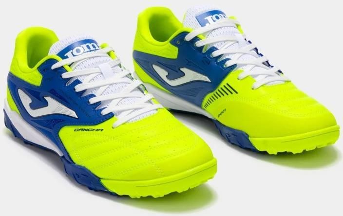 Joma Cancha 2511 TF Męskie Turfy 41 Specyfikacja produktu Producent - Joma Płeć - Męskie Kolor dominujący - Żółty Kolor Producenta - Lemon Fluor/Blue Materiał - Skóra Syntetyczna Materiał wkładki - Inny Materiał Podeszwa wewnętrzna - Pianka Poliuretanowa Podeszwa zewnętrzna - Guma Przeznaczenie - …