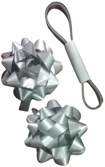 - Zestaw do pakowania prezentów - 2 rozetki + wstążka - srebrny