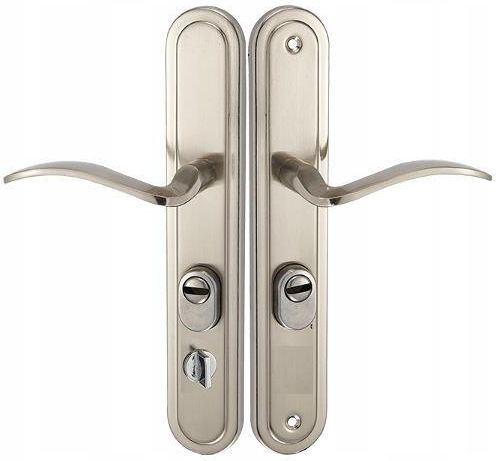 Klamka do drzwi zewnętrznych chińskich z szyldem prawa IRMA Prawa KZI_312P Klamka zewnętrzna IRMA na długim szyldzie należy do klasycznej linii. Łączy w sobie prostotę i elegancję. Seria pasuje do „drzwi chińskich”, będących w sprzedaży w Polsce między innymi do:SPLENDOOR, BAODEAN, SANJIN, HARDY, SPUTNIK, OMEGA, CONSALNE Zalety klamki IRMA KZI-312P Prawa klamka na długim szyldzie — idealna dla prawych drzwi, lepiej dopasowana dzięki kierunkowi działania. Odporność i ochrona — szyld z otworem na wkładkę cylindryczną — dodatkowa warstwa ochrony przed włamaniem.❗️ Solidne materiały — aluminiowa rękojeść i stalowy szyld gwarantują trwałość oraz odporność na warunki atmosferyczne. Uniwersalny rozmiar — rozstaw zamka 68 mm pasuje do większości „drzwi chińskich” dostępnych w Polsce. Estetyczne wykończenie — satynowa powierzchnia prezentuje się elegancko, łatwa do utrzymania w czystości. Kompletny zestaw montażowy — zawiera niezbędne elementy do zamocowania, co ułatwia montaż. Wszechstronność — do drzwi o grubości 38-70 mm; także dla drzwi z mniejszymi lub większymi profilami w tym zakresie. Marka Kuchinox — sprawdzony producent, gwarancja jakości i serwisu. Otrzymasz dodatkową ochronę przed włamaniem - klamka ma ochronę wkładki cylindrycznej. ❗️ Klamka jest dedykowana do prawych drzwi!❗️ Parametry techniczne Rozstaw zamka: 68 mm Wykończenie: satyna Materiał wykonania rękojeści klamki: aluminium Materiał wykonania szyldu klamki: stal Wysokość szyldu: 278 mm Szerokość szyldu: 48 mm Głębokość szyldu: 11 mm Długość rękojeści: 110 mm Głębokość od szyldu rozety: 56 mm Rozstaw otworów montażowych: 234 mm Styl: Uniwersalny Przeznaczenie: drzwi zewnętrzne o grubości 68 - 70 mm W zestawie otrzymasz komplet czyli 2 klamki do drzwi. niezbędny zestaw montażowy. Jak zmierzyć rozstaw w klamce Musisz zmierzyć odległość od środka otworu na trzpień do środka otworu zamka. Zobacz na rysunku jak to zrobić.