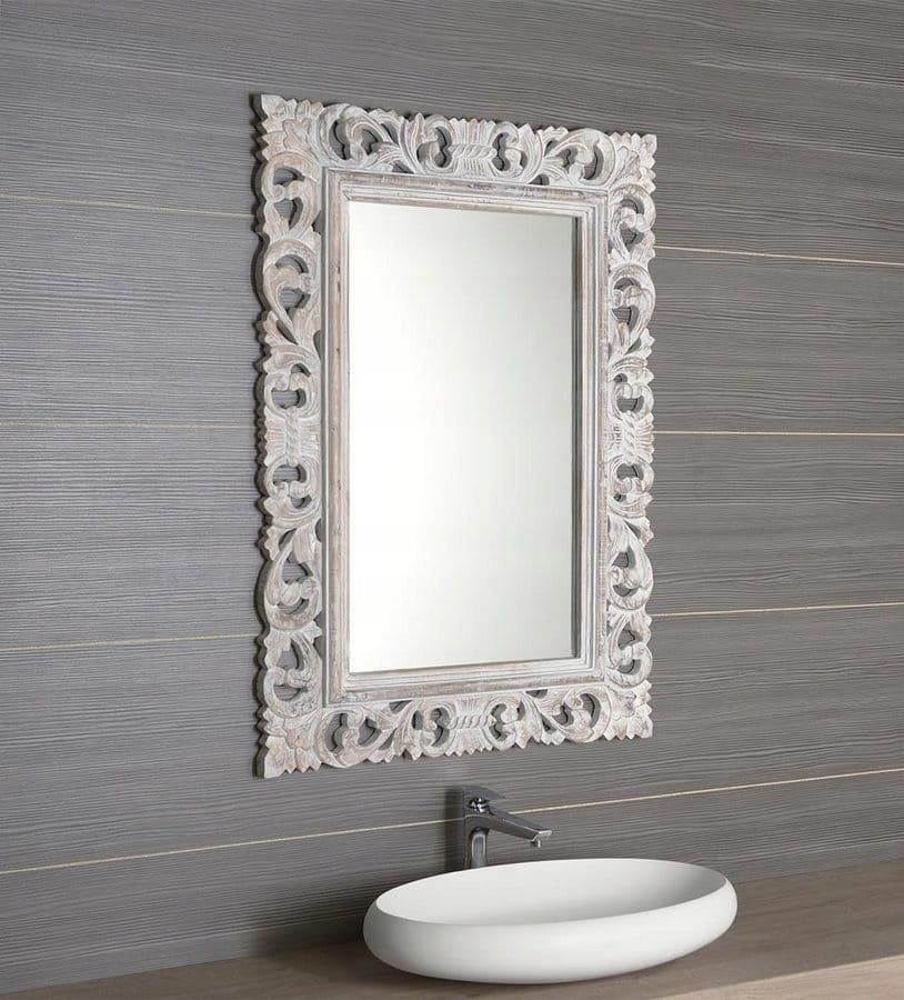 LUSTRO RAMA DREWNO RĘCZNIE RZEŹBIONA 80X120 BIAŁY Swarzędz