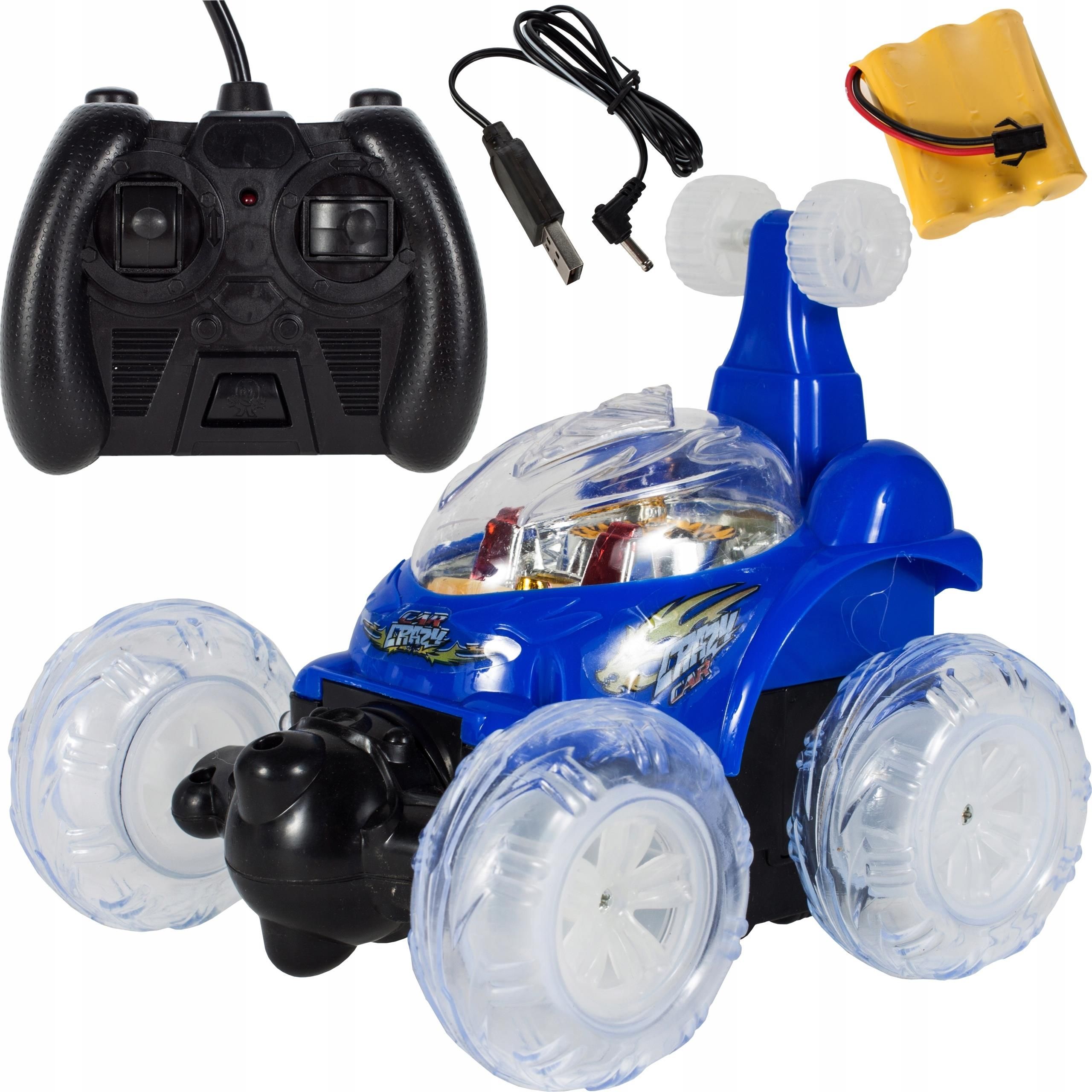 SAMOCHÓD ZDALNIE STEROWANY AUTO TWISTER KASKADER NA PILOTA DLA CHŁOPCA Parametry: Częstotliwość: 40 MHz Wymiar pilota: 10,0 x 9,0 x 4,0 cm Wymiar samochodu: 13,5 x 12,5 x 13,5 cm Wiek: od 6 lat Zasilanie: pilot: 2x baterie AA (brak w zestawie) W skład zestawu wchodzą Oryginalne opakowanie Samochodzik Pilot Ponadto zabawka jest cały czas oświetlona migającymi kolorowymi diodami dających w nocy niesamowite efekty świetlne. Niesamowity i niezwykle popularny samochód zdalnie sterowany - CRAZY TWISTER. Za sterami tego niezwykłego samochodu będziesz mógł nie tylko jeździć po podłodze ale także wykonywać niezwykłe ewolucje godne najlepszego akrobaty. CRAZY TWISTER to pojazd który potrafi dostarczyć niesamowitych wrażeń na długie godziny. Potrafi jeździć zarówno na czterech kołach jak i na dwóch robiąc przy tym niesamowite ewolucje. Podczas jazdy gra znany przebój CRAZY FROG, idealnie wpasowujący się do wariacji które wyczynia ta zabawka