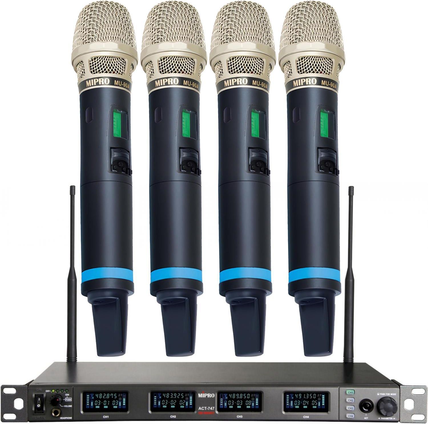 Zestaw bezprzewodowy z czterema mikrofonami do ręki, odbiornik czterokanałowy do montażu rack 1U MIPRO ACT-747 Kolorowy wyświetlacz VFD Szerokie pasmo transmisji 72 MHz Różnicowy odbiór sygnału (True diversity) Opcjonalny interfejs DANTE Maksymalnie 48 kanałów działających bez zakłóceń …