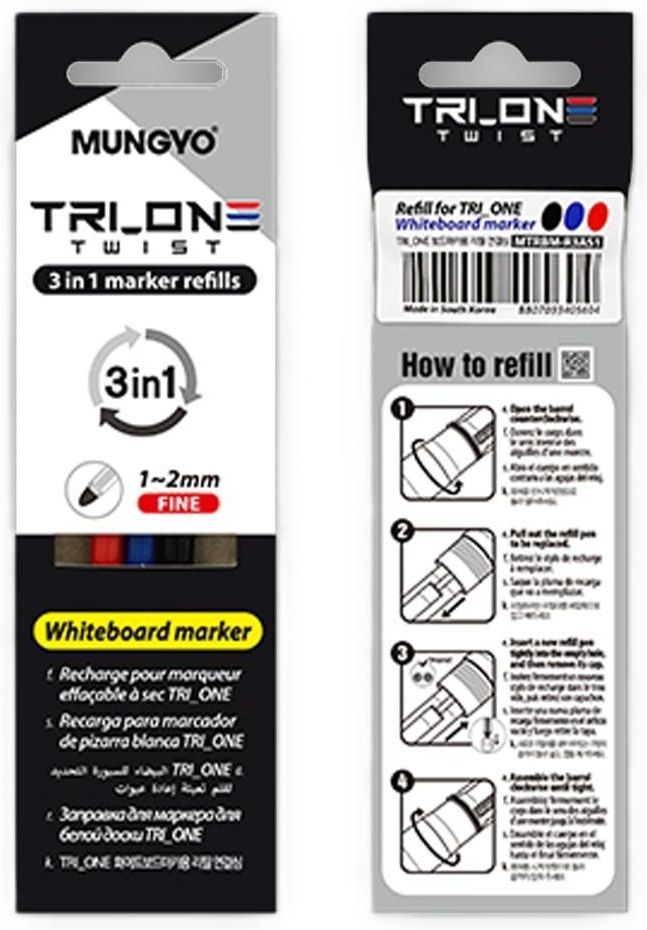 Wkłady do markerów suchościeralnych - zestaw 3 kolorów Zestaw obejmuje trzy wymienne wkłady do markerów, które oferują kombinację trzech kolorów w jednym. To idealne rozwiązanie dla osób szukających funkcjonalności i wygody w użytkowaniu. Trwałość i praktyczność Wyposażone w końcówki z wytrzymałego włókna akrylowego, które gwarantują odporność na zużycie podczas długotrwałego pisania. Dzięki nim, każdy kolor posiada imponującą długość pisania wynoszącą 160 metrów. Paleta kolorów W zestawie znajdują się najczęściej używane kolory: czarny, czerwony oraz niebieski. Idealnie nadają się do tworzenia różnorodnych notatek oraz prezentacji, które wymagają przejrzystości. EAN: 8807093405604