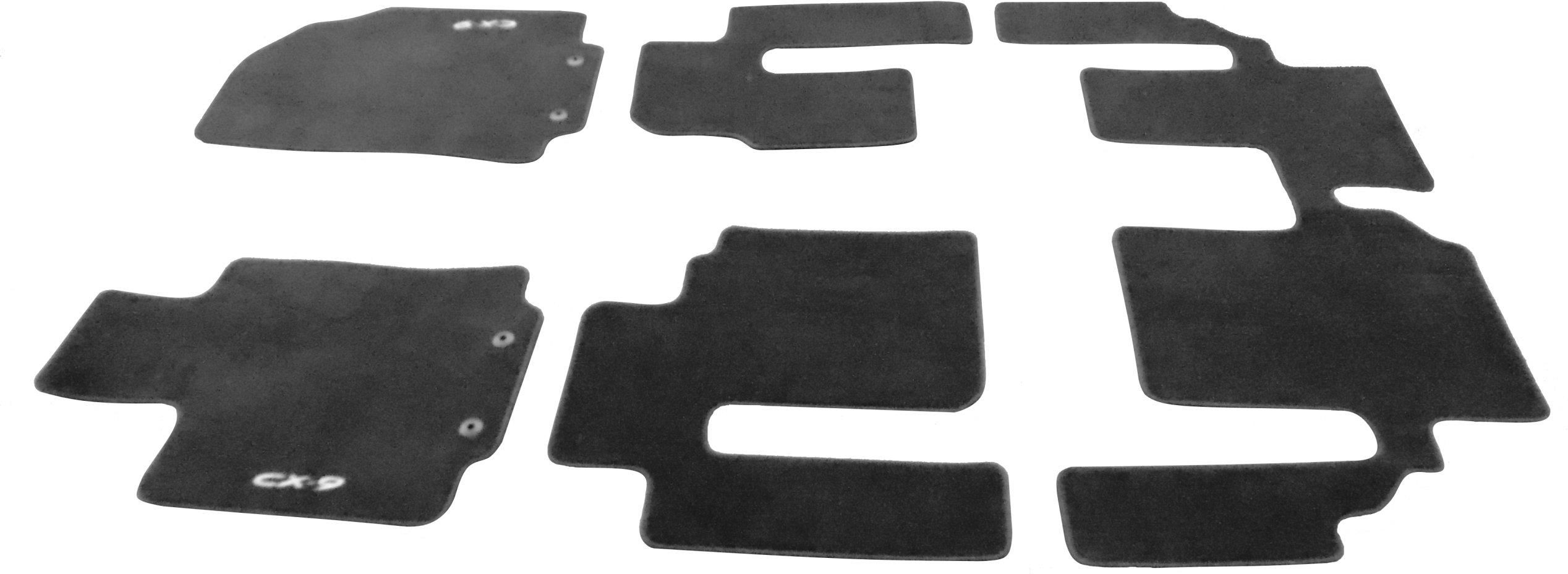 Komplet (5 sztuk) oryginalnych fabrycznie nowych dywaników welurowych Premium (TG31-V0-320A) z kolekcji oryginalnych akcesoriów MAZDA dedykowanych do samochodów: MAZDA CX-9 - model TB - roczniki 2006-2015 Komplet - 5 sztuk Kolor - Czarny Materiał - Welur Gęstość materiału - 860g/m² Granulowana …