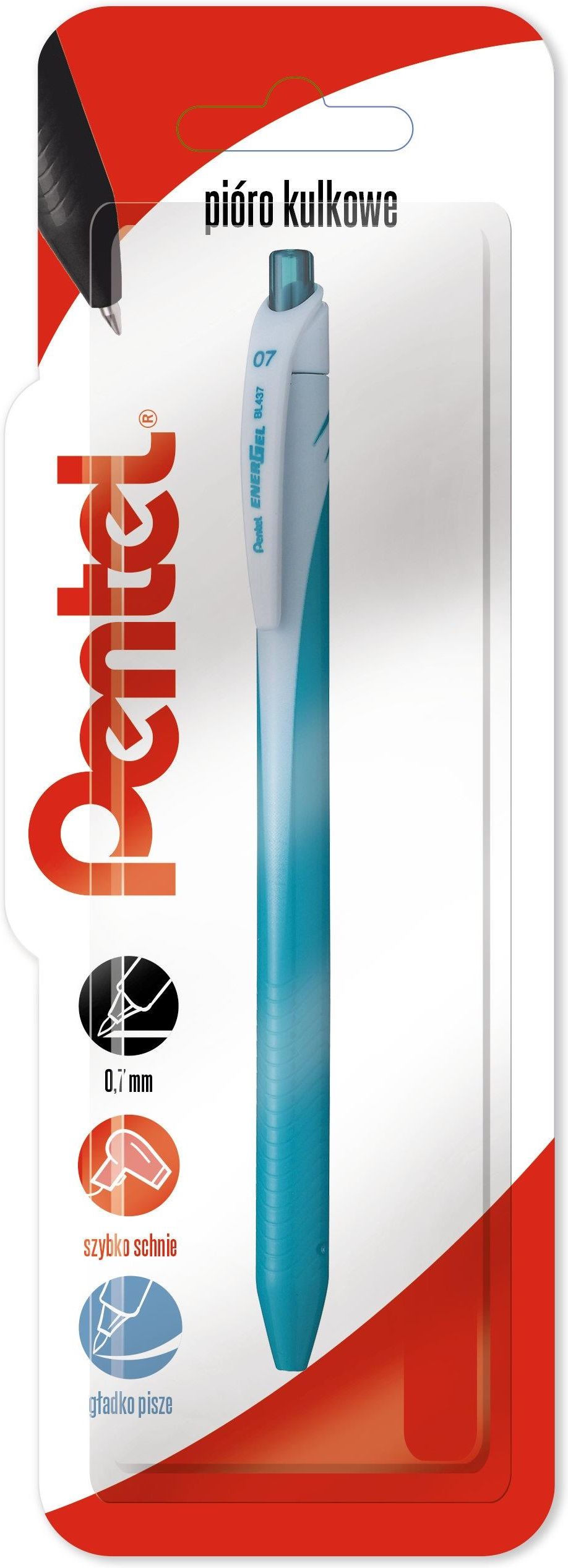 Unikalne pióro kulkowe 0,7 mm z niezrównanym tuszem żelowym EnerGel Pióro kulkowe o średnicy 0,7 mm zaimplementowane z niezwykle sprawdzonym, żelowym tuszem EnerGel. Specyficzna formuła tuszu nadaje niezrównany efekt płynności i niesamowitej lekkości pisania. Produkt oferowany jest w kolorze turkusowym, pojedyncza sztuka, sprzedawana w blisterze. EAN: 5902894023095