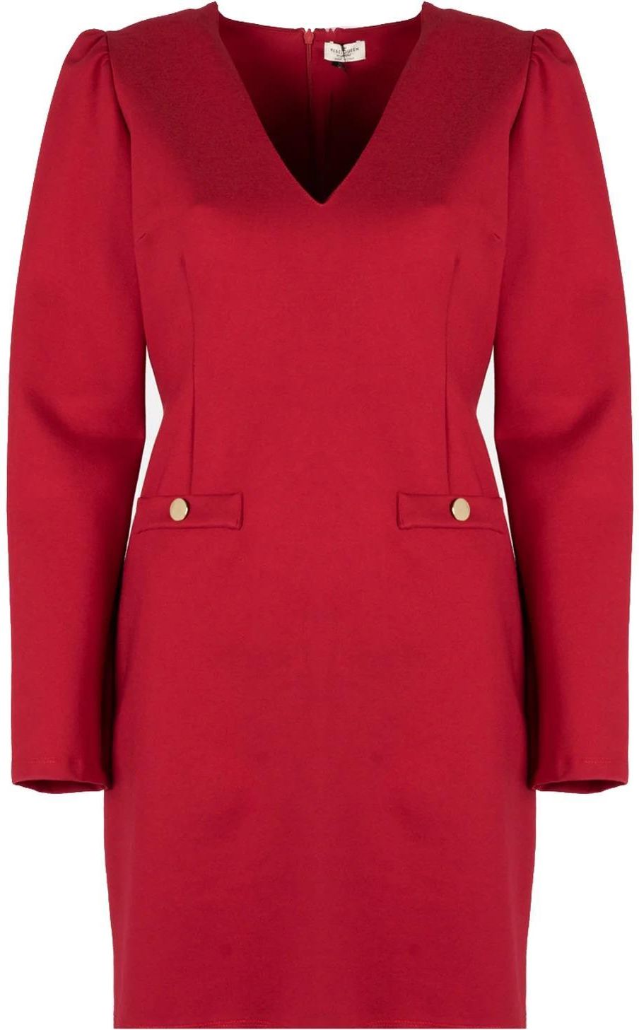 Podkreśl swoją sylwetkę dzięki naszemu dopasowanemu fasonowi, który idealnie przylega do ciała, eksponując Twoje kształty w najbardziej korzystny sposób. Ciesz się odważnym i zmysłowym wyglądem dzięki długości mini, która dodaje młodzieńczego uroku i jest idealna na wieczorne wyjścia. Elegancki dekolt V-neck subtelnie podkreśla linię szyi i dekoltu, dodając stylizacji kobiecego wdzięku i klasy. Długie rękawy zapewniają dodatkowy komfort i elegancję, jednocześnie sprawdzając się świetnie w chłodniejsze dni. Na karku znajduje się subtelny firmowy detal, który dodaje luksusowego akcentu i podkreśla wysoką jakość produktu. Wykonana z wysokiej jakości tkaniny, która jest miękka w dotyku, trwała i zapewnia komfort noszenia przez cały dzień. Wyprodukowana we Włoszech, co gwarantuje doskonałe rzemiosło i dbałość o każdy, nawet najmniejszy detal.
