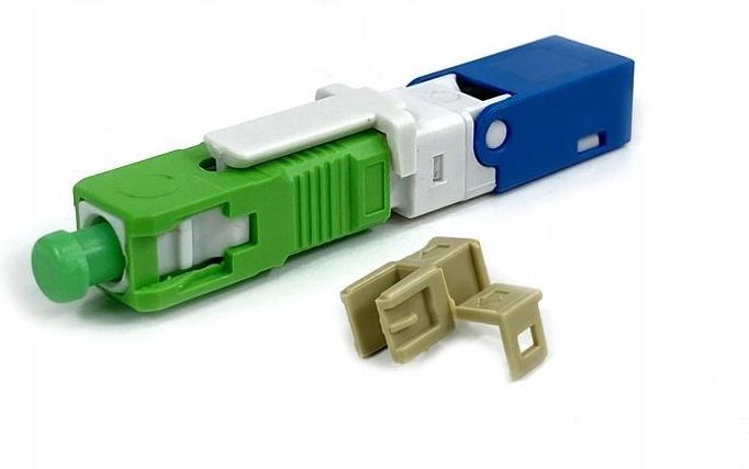 Szybkozłącze światłowodowe Spacetronik FFC-SC/APC-S07, 10 sztuk Nie chcesz kupować drogiej spawarki światłowodowej, ani wynajmować firmy świadczącej usługi tego typu? Wysokiej jakości Fast Connector FFC-SC/APC-S07 pozwala na zakończenie jednomodowego kabla światłowodowego o średnicy do 3 mm bez konieczności jego spawania. Znajdujący się wewnątrz złącza żel optyczny, skutecznie niweluje skutki niedokładnego cięcia, bądź niewielkiej przerwy pomiędzy wprowadzonym końcem włókna światłowodowego, a zamontowanym włóknem w środku złącza. Do zarobienia szybkozłączy nie jest wymagane sterylne środowisko, gdyż czoło światłowodu (powierzchnia styku) zostało wypolerowane i precyzyjnie wklejone w warunkach laboratoryjnych. Technologia V-rowków (pozycjonowanie przy montażu) pozwala uzyskać niską tłumienność złącza na poziomie 0,25 dB. Montaż jest szybki i łatwy. Wymagane narzędzia: Stripper, obcinarka do światłowodów oraz środek czyszczący, np. alkohol izopropylowy. Kontroluj jakość połączenia Dzięki unikalnemu rozwiązaniu, jakim jest przezroczysty korpus, możesz kontrolować na bieżąco jakość wykonywanego połączenia. Brak widocznego światła w złączu oznacza doskonałe połączenie. Do wykonania testu będziesz potrzebować wizualny lokalizator uszkodzeń. Łatwy montaż Szybkozłączki są łatwe w montażu, a średni czas potrzebny na przygotowanie połączania wynosi około 3 minuty. Co potrzebujesz? Wymagane narzędzia: Stripper, obcinarka do włókien światłowodowych oraz środek czyszczący, np. alkohol izopropylowy. Cechy produktu - Szybki montaż, - Możliwość wielorazowego stosowania, - rodzaj światłowodu: jednomodowy, - średnica włókna 125 ?m (657A & 657B) (dł. 10 mm), - średnica powłoki 250 ?m (dł. 19 mm), - średnica kabla do 3 mm, - długość złącza 51,5 mm, - temperatura pracy -40~+85, - IL (1310 nm & 1550 nm): 0.25 dB (śr.), 0.50 dB (maks.), - RL: 55 dB, - opakowanie zawiera 10 szt.