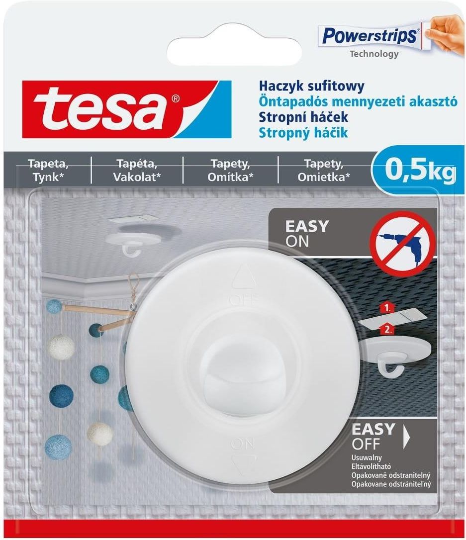 Opinie Tesa Sufitowy haczyk samoprzylepny 0,5 kg tapeta i tynk biały (77781) Swarzędz