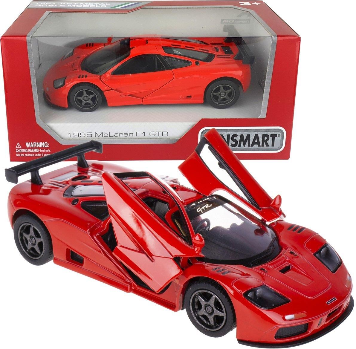 🚗 AUTO MCLAREN F1 GTR METALOWY MODEL KINSAMRT 🚗 ⭐ Model metalowy MCLAREN F1 GTR 1995 w skali 1:34 z napędem typu "Pull Back". Model wykonany z metalu i plastiku. Posiada otwierane boczne drzwi, przez które można zajrzeć do wnętrza modelu oraz posiada gumowe opony. Firma Kinsamrt została założona w 1992 roku w celu tworzenia odlewanych samochodzików dla dzieci i, co równie ważne, dziecka w nas dorosłych. Zabawka rozbudzi w Twoim dziecku dużą ciekawość, która pozwoli rozwijać wyobraźnię dziecka i wpłynąć na prawidłowy rozwój. ❗Auto dostępne w czterech kolorach: Niebieski, Czarny, Biały lub Czerwony❗ Napisz jaki kolor samochodu kupujesz w formularzu zakupowym w sekcji: "Wiadomość dla sprzedającego", podczas składania zamówienia. W innym przypadku rodzaj zostanie wybrany losowo. 🎁 Estetyczne pakowanie Prezentujemy model samochodu, który dostarcza nie tylko wspaniałą kolekcjonerską wartość, ale także estetyczne opakowanie! Nasz model samochodu jest starannie zapakowany w piękne pudełko z przeźroczystym okienkiem, które pozwala Ci podziwiać jego detale już przed otwarciem. To nie tylko doskonały dodatek do Twojej kolekcji, ale również idealny prezent dla dziecka lub miłośnika motoryzacji. 🎖️ Licencyjne modele Firma Kinsmart przez lata wprowadzała na rynek modele w zmniejszonej skali i samochody z kreskówek pod swoją marką, odpowiednio, KINSMART i KINSFUN. Dziś pozyskaliśmy licencje od ponad 30 producentów samochodów na produkcję autentycznych modeli samochodów, których jest ponad 200 i wciąż rośnie. 🚗💨 Napęd pull-back Na tylnej osi zamontowany jest napęd pull-back naciągając autko do tyłu i puszczając samochód mknie przed siebie❗ Otwierane drzwi umożliwiają lepsze dotarcie do wnętrza auta, natomiast gumowe opony eliminują poślizgi kół. Pojazd charakteryzuję się znakomitą jakością, wykonany z dbałością o detale. Znakomity upominek na każdą okazję, zarówno dla początkujących jak i zaawansowanych kolekcjonerów i pasjonatów motoryzacji. ✨ Specyfikacja: Wymiary: 12,5cm x 6cm x 3,5 cm Otwierane drzwi: Tak Materiał: Metal oraz Plastik Napęd: Pull-Back Kolor: Niebieski, Biały, Czarny, Czerwony Skala: 1:34 OSTRZEŻENIE NIEODPOWIEDNIE DLA DZIECI W WIEKU PONIŻEJ 3 LAT. MAŁE CZĘŚCI.