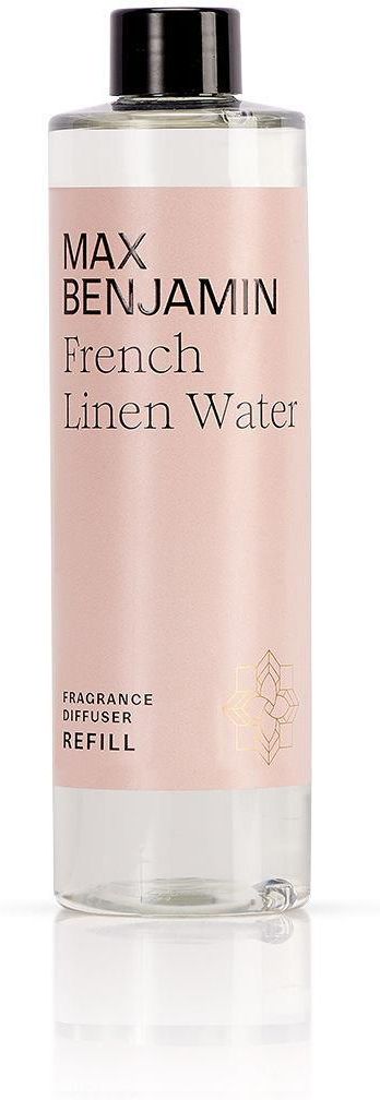 Max Benjamin - Uzupełniacz do dyfuzora 300 ml - French Linen Water Classic Olejek zapachowy (300ml) do dyfuzora Max Benjamin powstał z troski o środowisko – dzięki niemu Twój oryginalny flakonik Max Benjamin może Ci służyć przez długie lata.Do każdego olejku dodajemy nowy zestaw patyczków, aby Twój ulubiony zapach nie był zniekształcony przez poprzednie nuty zapachowe.Olejek zapachowy Max Benjamin to najwyższej jakości kompozycja aromatów, bez dodatku alkoholu. Jedno opakowanie zapewni wspaniały zapach na okres 8 miesięcy (2 uzupełnienia dyfuzora 150ml).French Linen Water to zapach przypominający wieczory spędzone na werandzie w Prowansji, ten delikatny kwiatowy aromat zawiera nuty lawendy, słodkiej pomarańczy, petitgrain i cytrusów.