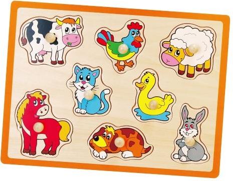 Kod produktu: 7912 Drewniane Puzzle z pinezkami od Viga Toys dla dzieci od 18 miesiąca życia to idealne rozwiązanie do domu jak i do przedszkola. Składa się z planszy oraz 8 elementów tematycznych, które należy do niej zamontować. Na drewnianej podstawce znajdują się wgłębienia, które swoim kształtem odpowiadają kolorowym puzzlom. Całość wykonana została z drewna, pomalowana bezpiecznymi dla dziecka farbami w żywe barwy, które zadowolą każdego użytkownika i dadzą mnóstwo radości z zabawy. Charakterystyka: - puzzle pinezkowe marki Viga o motywie farmy to świetna zabawka dla dzieci w wieku od 18 miesiąca życia, - zestaw zawiera: tablicę z wgłębieniami i 8 elementów przedstawiających zwierzęta żyjące na farmie z pinezkami do chwytania, - zabawka nie posiada ostrych krawędzi i wykonana jest z najwyższej jakości materiałów bezpiecznych dla dzieci i środowiska, - pomalowana nietoksycznymi farbami. Zabawka rozwija: - wyobraźnię, - zdolności manualne, - zdolności poznawcze, - umiejętność logicznego myślenia, - małą motorykę, - dokładność. Producent - Viga ToysWiek - od 18 miesiącaWymiary produktu - 30 x 22,5 x 1 cmWymiary opakowania - 30 x 22,5 x 1 cm - - - - -