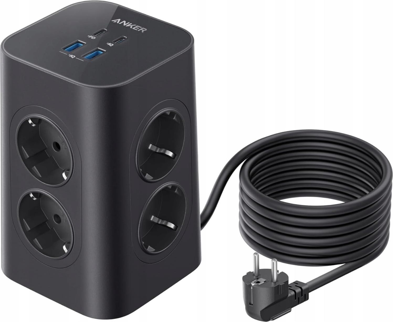 Anker 12-in-1 Fast Charging Power Strip USB-A/USB-C PD 20W Anker Listwa Zasilająca 8 gniazd sieciowych + 4 USB Fast Charge 20W USB-C – 2m Kod produktu: A9185 311 Bezpieczne i wygodne zasilanie w jednym urządzeniu Zapewnij ochronę i wygodę dla wszystkich swoich urządzeń dzięki wysokiej jakości listwie zasilającej Anker. Doskonała do domu, biura i pracy zdalnej. Najważniejsze cechy 8 gniazd sieciowych do podłączenia komputerów, monitorów, lamp i innych urządzeń elektrycznych. 4 porty USB (2x USB-A + 2x USB-C) z funkcją Fast Charge 20W – szybkie ładowanie smartfonów, tabletów i innych urządzeń mobilnych. Długość przewodu 2 m – łatwy dostęp do zasilania w każdym pomieszczeniu. Ochrona przeciwprzepięciowa – zabezpiecza sprzęt przed uszkodzeniem w przypadku nagłych skoków napięcia. Solidna konstrukcja i trwałość – obudowa odporna na uszkodzenia, przewód z wytrzymałym oplotem. Kompatybilność międzynarodowa – idealna do użytku w domu i biurze. Bezpieczeństwo użytkowania Zabezpieczenie przed przegrzaniem i przepięciem Produkt przeznaczony wyłącznie do użytku wewnętrznego Nie nadaje się do podłączania urządzeń wysokiej mocy przekraczających dopuszczalne obciążenie Dlaczego warto wybrać Anker? Marka Anker to synonim niezawodności i bezpieczeństwa. Dzięki listwie zasilającej możesz jednocześnie ładować swoje urządzenia mobilne i podłączać sprzęt elektryczny, zachowując pełną kontrolę nad bezpieczeństwem. Specyfikacja techniczna Nazwa produktu: Listwa zasilająca Anker USB (12-w-1, 20W) - Biała Maksymalne obciążenie: 16A / 3680W Porty USB: 2x USB-A + 2x USB-C, Fast Charge 20W Długość kabla: 2 metry, w oplocie Porty: 8xAC 230V + 2x USB-A + 2x USB-C, łącznie 20 W Wyjście USB-C: USB-C1: Wyjście: 5 V = 3 A / 9 V = 2,22 A / 12 V = 1,67 A, maks. 20 W USB-C2: Wyjście: 5 V = 3 A, 15 W Wyjście USB-A: 5 V = 2,4 A, maks. 12 W Wyjście USB-C + USB-A: USB-C1 + USB-C2 + USB-A1 + A2: Współdzielone 5 V = 3 A, 15 W USB-C1/USB-C2 + USB-A1 + A2: Współdzielone 5 V = 3 A, 15 W Ochrona przeciwprzepięciowa: 300 J Technologia: GaN, PowerIQ, VoltageBoost Wymiary: około 31,2 x 11,3 x 4,1 cm Typ wtyczki: Wtyczka EU (Schuko) Kolor: Czarny