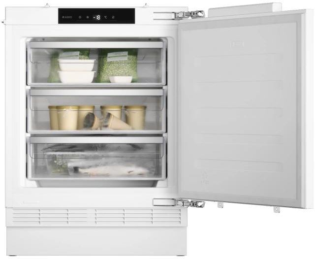 Zamrażarka do zabudowy ASKO F22881I, podblatowa Ogólny opis Rodzaj urządzenia: Zamrażarka szafkowa Rodzaj montażu: Wbudowany zintegrowany Linia produktów: 2-Series Kolor: Biały Charakterystyka System chłodzenia Cool Flow System Cool Flow umożliwia przechowywanie żywności na dowolnej półce lub szufladzie w lodówce i zapewnia szybkie przywrócenie temperatury po otwarciu i zamknięciu drzwi. Ciągły przepływ powietrza zmniejsza również wysychanie i dłużej zachowuje świeżość żywności pierwszego dnia. Ręczna kontrola wilgotności Dzięki suwakowi na szufladzie na owoce i warzywa można łatwo dostosować poziom wilgotności w zależności od rodzaju i ilości żywności. Gdy szuflada jest w pełni załadowana, zwykle trzeba otworzyć suwak i odwrotnie, gdy jest w niej mniej żywności. W ten sposób zapobiega się wysychaniu lub gniciu żywności. Super Freeze Funkcja Super Freeze™ uruchamia intensywny nadmuch zimnego powietrza w zamrażarce. Jest to szczególnie przydatne w przypadku załadowania zamrażarki dużą ilością świeżej żywności. Dzięki szybkiemu procesowi kryształki lodu są małe i zawierają mniej wody, co wpływa korzystnie na jakość mrożonej żywności. Montaż na drzwiach W przypadku montażu drzwi na drzwiach niestandardowe panele i drzwi urządzenia są trwale połączone poprzez bezpośrednie przymocowanie drzwi panelu do drzwi urządzenia. Drzwi lodówki przenoszą zatem ciężar drzwi urządzenia. Specyfikacja Budowa i wydajność Szybkie zamrażanie 1 sprężarka Wykorzystanie i elastyczność Pojemność całkowita: 101 l Pojemność zamrażarki: 101 l Szuflada zamrażająca: 3 szuflady Możliwość zamrażania w 24 godziny: 4,6 kg Interakcja i kontrola Rodzaj wyświetlacza: Wyświetlacz LED Cyfrowy wskaźnik temperatury do zamrażarki Projekt i integracja Zawias drzwi: Zawias SoftClose od drzwi do drzwi Regulacja wysokości: Regulowane przednie nóżki Regulowane nóżki: 4 Otwieranie drzwi: Odwracalne otwieranie drzwi Wymiary niszy min-max (w x sz x g): 82-90 × 60 × 55 cm Bezpieczeństwo i konserwacja Alarm świetlny zbyt długo otwartych drzwi w części zamrażającej: Alarm świetlny zbyt wysokiej temperatury w części zamrażającej Alarm dźwiękowy zbyt długo otwartych drzwi Dane techniczne Poziom hałasu: 35 dB(A)re 1 pW Klasa klimatyczna: SN, N, ST Czynnik chłodniczy: R600A Klasa zamrażarki : ****4 gwiazdki Klasa energetyczna: D Szacowane roczne zużycie energii: 142 kWh Moc znamionowa: 100 W Prąd znamionowy: 0,6 amp Częstotliwość zasilania: 50 Hz Czas przechowywania bez zasilania: 14 h Wymiary Wymiary produktu (WxSxG): 81,8 × 59,5 × 54,5 cm Długość kabla: 2,0 m Masa urządzenia: 36,5 kg Informacje logistyczne Wymiary zapakowanego produktu (WxSxG): 88,8 × 62,8 × 57 cm Waga brutto: 39 kg Kod urządzenia: 20010092 Kod EAN: 3838782624940