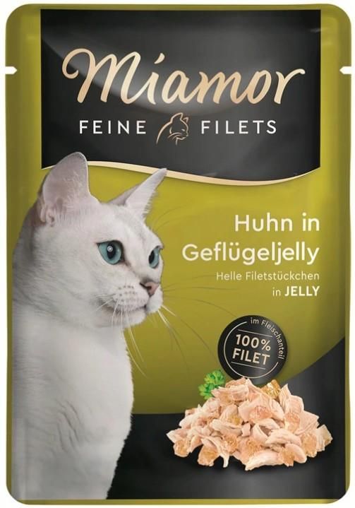 MIAMOR FEINE FILETS Karma MOKRA dla KOTÓW saszetka kurczak z GALARETKĄ drobiową 100g Lekkostrawny Niskotłuszczowy Odpowiedni dla starszych kotów i/lub tych z nadwagą Bez wątroby i podrobów Bez produktów ubocznych pochodzenia zwierzęcego Karma uzupełniająca dla dorosłych kotów MIAMOR Feine Filets w …
