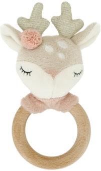 Pluszowy, chwytający jeleń z grzechotką z Bieco jest świetną zabawką dla małego nowicjusza i prezentuje się w uroczym kształcie. Jeleń jest chwytakiem, grzechotką i ząbkowanym pierścieniem w jednym, a tym samym wiernym towarzyszem w pierwszych miesiącach życia dziecka. Naturalne drewno i miękki plusz są miłe w dotyku Twojego dziecka, a jednocześnie stanowią ekscytujący kontrast dla stymulacji zmysłu dotyku. Jako pomoc przy ząbkowaniu, drewniany pierścień wzmacnia podniebienie dziecka i pomaga w łagodzeniu bólu ząbkowania. Jeśli jeleń jest potrząsany, grzechotcze szczęśliwie i w ten sposób w zabawny sposób wspiera drobne zdolności motoryczne i zmysł słuchu Twojego dziecka. Dyskretna Design sprawia, że ta cenna pedagogicznie zabawka edukacyjna jest stylowym towarzyszem, który inspiruje rodziców i dziecko. szczegóły dotyczące produktu: Wymiary (długość x szerokość x wysokość): 15 x 10 x 3 cm Materiał: bawełna, wypełnienie poliestrowe t Chwytak, grzechotka i pierścień ząbkowany w jednym Wspiera drobne zdolności motoryczne i zmysł słuchu Wskazówki pielęgnacyjne: Wytrzeć wilgotną wodą z delikatnym mydłem t Wiek: od 2 miesięcy