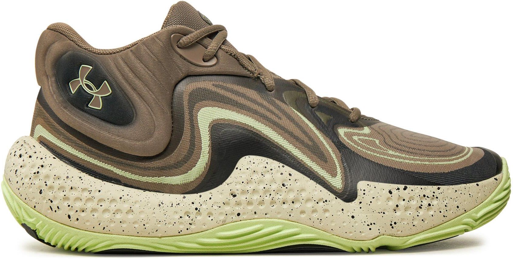 Doskonałe zarówno na asfalcie, jak i parkiecie - buty do koszykówki Spawn 6 sprawdzą się w każdych typach rozgrywek. Te buty są lekkie, przewiewne i wystarczająco wytrzymałe, aby utrzymać się na każdej powierzchni. Buty do koszykówki uniseks o budowie stabilizującej stopę, która zwiększa bezpieczeństwo podczas gry. Posiadają odpowiednią amortyzację oraz trwałą i odporną na ścieranie podeszwę. Specjalnie zaprojektowana cholewka zapewnia komfort oraz odpowiednią wentylację w trakcie aktywności sportowych. Buty Under Armour model: 3028338 w kolorze oliwkowym/khaki posiadają niski profil oraz oddychającą dzianinową cholewkę, która zapewnia trwałość, lekkość oraz odpowiednią elastyczność. Buty Under Armour koszykarskie uniseks z technologicznym wsparciem: zwrot energii, dynamiczna amortyzacja Buty do kosza zostały wyposażone w podeszwę środkową wykonaną w technologii MICRO G z amortyzującej pianki EVA. Jest bardziej lekka i wąska, niż tradycyjne pianki oraz pozwala na bardziej płynne odbicie od podłoża. Amortyzacja Micro G gwarantuje responsywną wydajność, naturalną stabilność i komfort podczas ruchu. Sportowe sneakersy z niezawodnymi detalami: miękki, wyściełany kołnierz, syntetyczne nakładki zwiększające trwałość Klasyczne sznurowanie. Specjalnie zaprojektowany, wyściełany język zapewnia stabilizację i zmniejsza nacisk na śródstopie. Doskonała wygoda i dopasowanie dzięki wyściełanemu kołnierzowi. Strategicznie rozmieszczone syntetyczne nakładki zwiększają trwałość i ochronę w obszarach narażonych na ścieranie. Wkładka wykonana z miękkiej pianki zapewnia komfort stóp. Buty sportowe uniseks posiadają podeszwę środkową z pianki EVA, która zapewnia lekkie i dynamiczne wybicie, jednocześnie skutecznie amortyzuje uderzenia. Buty sportowe uniseks zostały wyposażone w podeszwę zewnętrzną, która posiada specjalny wzór w strefach punktów obrotu, który zapewnia zwiększoną przyczepność. Buty sportowe uniseks z amortyzowaną poduszka pod piętą Oliwkowe buty do gry w koszykówkę dla kobiet i mężczyzn UA Spawn 6 Mid Camo - szczegółowe cechy: buty przeznaczone do gry w koszykówkę cholewka o niskim profilu elastyczna i oddychająca dzianinowa cholewka standardowe sznurowanie wyściełany kołnierz i język dla większego komfortu i stabilizacji cholewka z syntetycznymi nakładkami miękka, komfortowa wkładka z pianki zaokrąglona, gumowa podeszwa zewnętrzna zapewnia szybsze ruchy na parkiecie amortyzowana poduszka pod piętą lekka podeszwa środkowa MICRO G wykonana z pianki EVA zapewnia bardziej płynne odbicie od podłoża