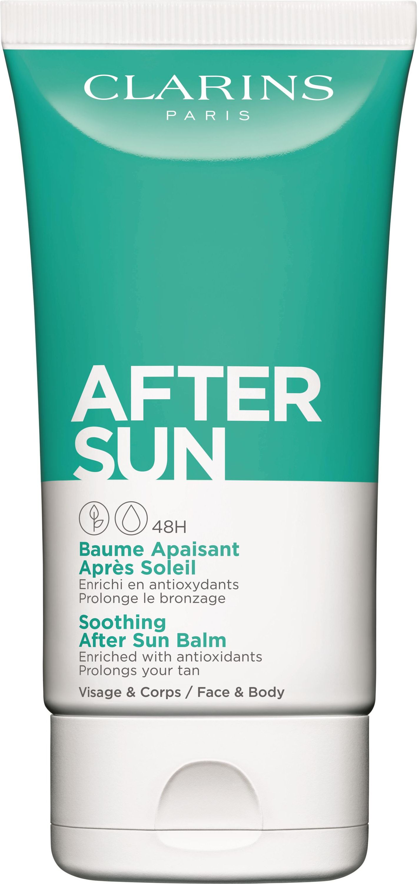 Clarins After Sun Soothing After Sun Balm, 150 ml, Produkty po opalaniu dla kobiet, Aby Twoja skóra nie cierpiała z powodu przebywania na słońcu, ważne jest aby odpowiednio o nią dbać nie tylko podczas opalania, ale także po nim. Produkt z zawartością pantenolu Clarins After Sun Soothing After Sun Balm zadba o całkowite ukojenie i dopełnienie utraconej wilgoci, znacząco wesprze regenerację oraz pomoże w redukcji zaczerwienienia. Właściwości: przedłuża opalony wygląd nadaje aksamitną miękkość doskonale łagodzi skórę łatwo się rozsmarowuje i szybko wchłania można używać na twarz i ciało intensywnie nawilża Sposób użycia: Stosuj regularnie po każdym opalaniu.