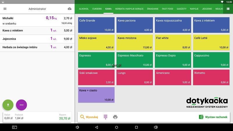 Wszechstronny i nowoczesny system POS online na platformę Android dla firm gastronomicznych. Łatwiejszy w użyciu niż kasa. Dopasowany do potrzeb i budżetu Twojego biznesu. Wspiera fiskalizację online. Płatność w systemie abonamentowym opłacanym z góry co miesiąc, co 12 miesięcy z 10% rabatu, co 24 mniesiące z 20% rabatem i co 36 miesięcy z 30% rabatem. Zarządzaj swoim biznesem zdalnie za pomocą Chmury Podczas aktywacji system kasowy Dotykačka, tworzy wirtualną przestrzeń w Chmurze Dotykačka. Są w niej zapisywane dane i ustawienia, którymi zarządzasz z dowolnego miejsca na świecie poprzez przeglądarkę na komputerze, tablecie lub smartfonie. Gdy aktywujesz kolejne stanowisko kasowe, możesz podłączyć je do już istniejącego konta w chmurze. Będziesz zarządzał wszystkimi swoimi lokalami, a dane i ustawienia będą wzajemnie udostępniane. Chmura Dotykačka to łatwy i wygodny w obsłudze system online do zarządzania systemami kasowymi działającymi w Twojej firmie. Masz pełny dostęp do wszystkich danych z dowolnego miejsca. Chmura Dotykačka to Twoje miejsce do zarządzania, kontroli i analityki. Funkcje zaprojektowane z myślą o firmach z sektora gastronomicznego. Producent oferuje kilka wersji funkcjonalności systemu Dotykačka, które dobieramy według naszych potrzeb. Integracje z systemami zewnętrznymiDotykačka stale rozszerza swoje możliwości współpracy z dodatkowymi systemami i urządzeniami pozwalającymi na poprawę działania i obsługi systemu. Na dzień dzisiejszy najpopularniejszymi funkcjami są:・drukarki fiskalne Posnet, Elzab i Novitus ・terminale płatnicze: PolCard, Elavon, eService ・POSy: Elzab T10, Dotykačka ・Integracja z platformami: Bolt Food, Uber Eats, Restauracja.online, RestBill czy Selesto System POS kupujesz na lata. Skorzystaj na tym.Opłacając abonament za wybrany okres z góry, zyskujesz 10%, 20% lub nawet 30% rabatu! W każdej chwili możesz zmienić abonament na inny lub czasowo zawiesić licencję, bez utraty cennych danych.Ceny bez rabatuPłatność netto za jeden miesiąc・ŁATWO: 89,00 zł ・KOMPLET: 129,00 zł ・NIEOGRANICZONA: 199,00 złRabat 10%Płatność netto z góry za 12 miesięcy・ŁATWO: 80,10 zł ・KOMPLET: 116,10 zł ・NIEOGRANICZONA: 179,10 złRabat 20%Płatność netto z góry za 24 miesiące・ŁATWO: 71,20 zł ・KOMPLET: 103,20 zł ・NIEOGRANICZONA: 159,20 złRabat 30%Płatność netto z góry za 36 miesięcy・ŁATWO: 62,30 zł ・KOMPLET: 90,30 zł ・NIEOGRANICZONA: 139,30 zł