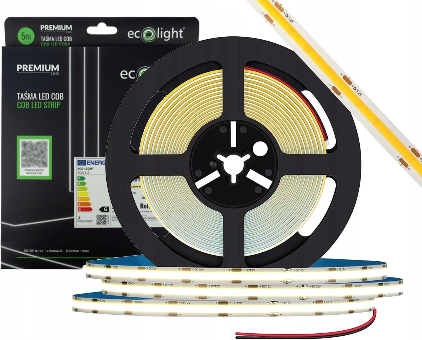 Ecolight Taśma Led Cob 7W/M 12V Rolka 5M Neon Pasek Linia Ciepła Wodoodporna Ip67 (Ec61112) Świdnica