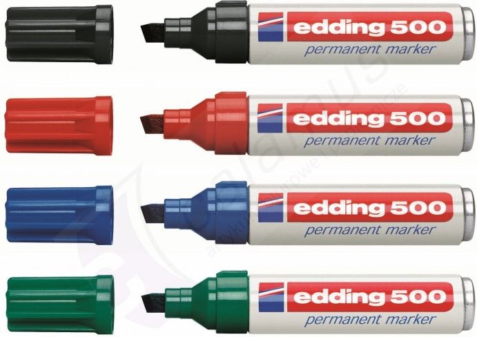 Marker permanentny ścięty czerwony Edding 500 idealny do pisania, zakreślania i znakowania można go używać na prawie wszystkich materiałach, również na metalu, tworzywie sztucznym i szkle odporny na działanie światła i szybkoschnący wodoodporny i odporny na ścieranie na prawie wszystkich powierzchniach tusz o słabym zapachu, bez dodatku toluenu/ksylenu przystosowany do ponownego napełniania aluminiowa obudowa markera kolor: czerwony grubość linii pisania: 2 - 7mm niemiecka jakość w przystępnej cenie