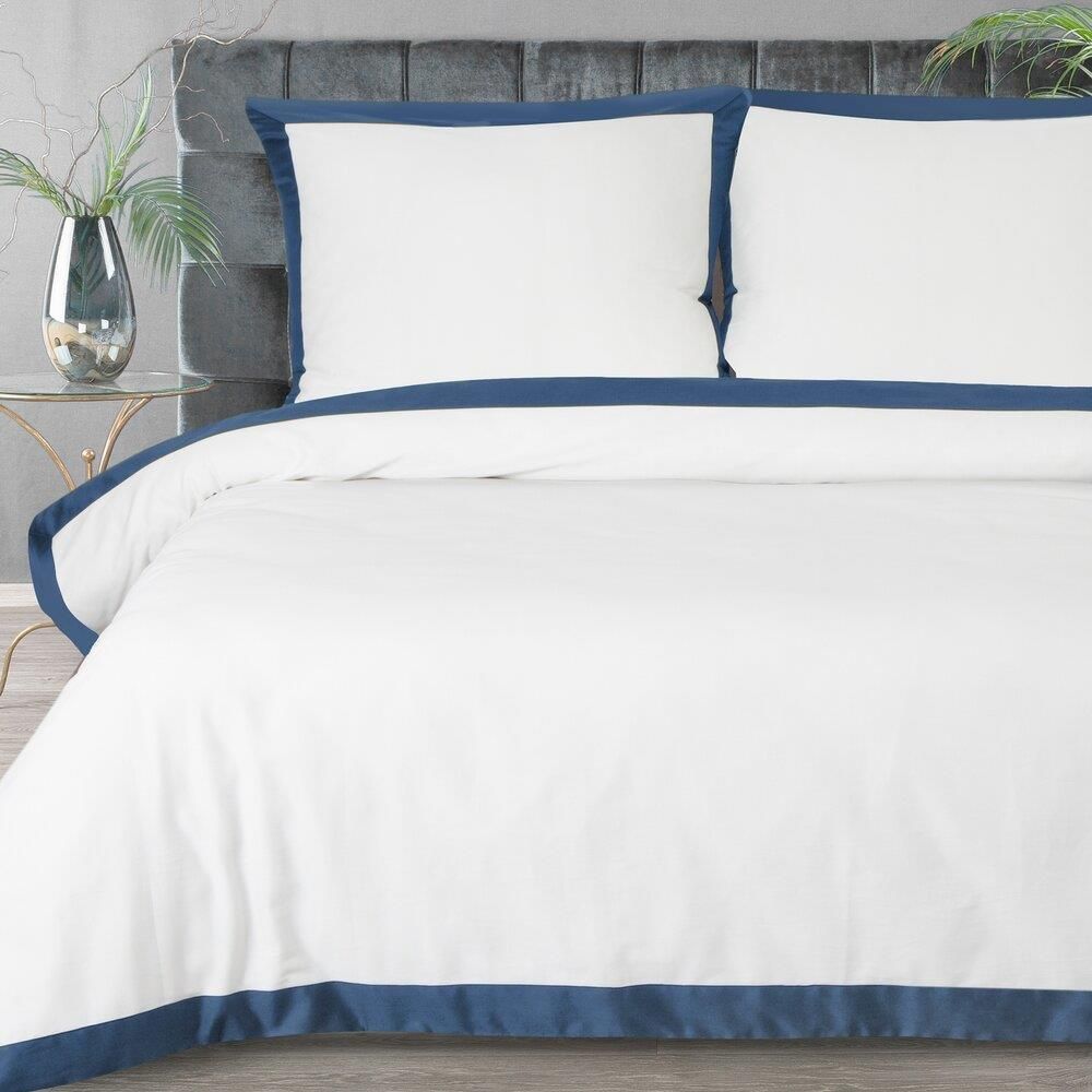 Eurofirany Pościel Satynowa Laura 160X200 Biała Granatowa Kanta Świdnica