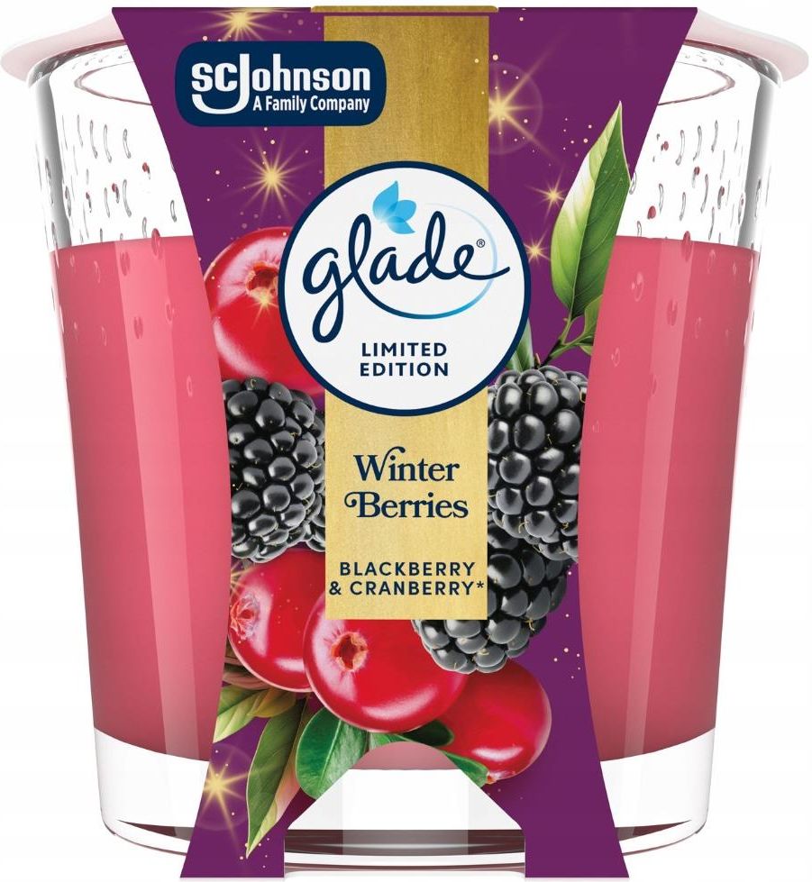 Glade® Winter Berries, świeca zapachowa 112 g Zimowa kompozycja jagód i przypraw zamknięta w eleganckiej świecy. Wystarczy zapalić, by dodać wnętrzu ciepła i świątecznego charakteru. Idealna na długie wieczory – tworzy nastrojowe światło i zapach, który sprzyja odpoczynkowi. Rozpal swoje zmysły i napełnij przestrzeń wokół siebie bogatym aromatem, który utrzymuje się przez długi czas Jak używać? Zapal świecę, usiądź wygodnie i poczuj jak stres opuszcza Twoje ciało. Stosuj tak często jak tego potrzebujesz. Pamiętaj, żeby stawiać świecę na powierzchniach żardoodpornych. Ostrzeżenia Postępowanie niezgodne z instrukcją może spowodować pożar lub obrażenia ciała. Zapaloną świecę stawiać na żaroodpornych powierzchniach. Osoby cierpiące na nadwrażliwość zapachową powinny zachować ostrożność przy stosowaniu tego produktu. Odświeżacze powietrza nie mogą zwolnić z przestrzegania zasad postępowania w zakresie higieny. Odkryj magię zapachów Glade skomponowanych przez mistrzów perfumiarstwa! Starannie wyselekcjonowane aromaty tworzą niepowtarzalną kompozycję zapachową, która przemienia codzienne chwile w zmysłowe doświadczenie. W szerokiej ofercie Glade można znaleźć automatyczne i elektryczne odświeżacze powietrza, praktyczne spraye, odświeżacze w formie żelu, nastrojowe świece oraz eleganckie dyfuzory do aromaterapii - każdy znajdzie tu coś dla siebie. Otwórz drzwi do świata Glade i zmieniaj nastrój zapachami!