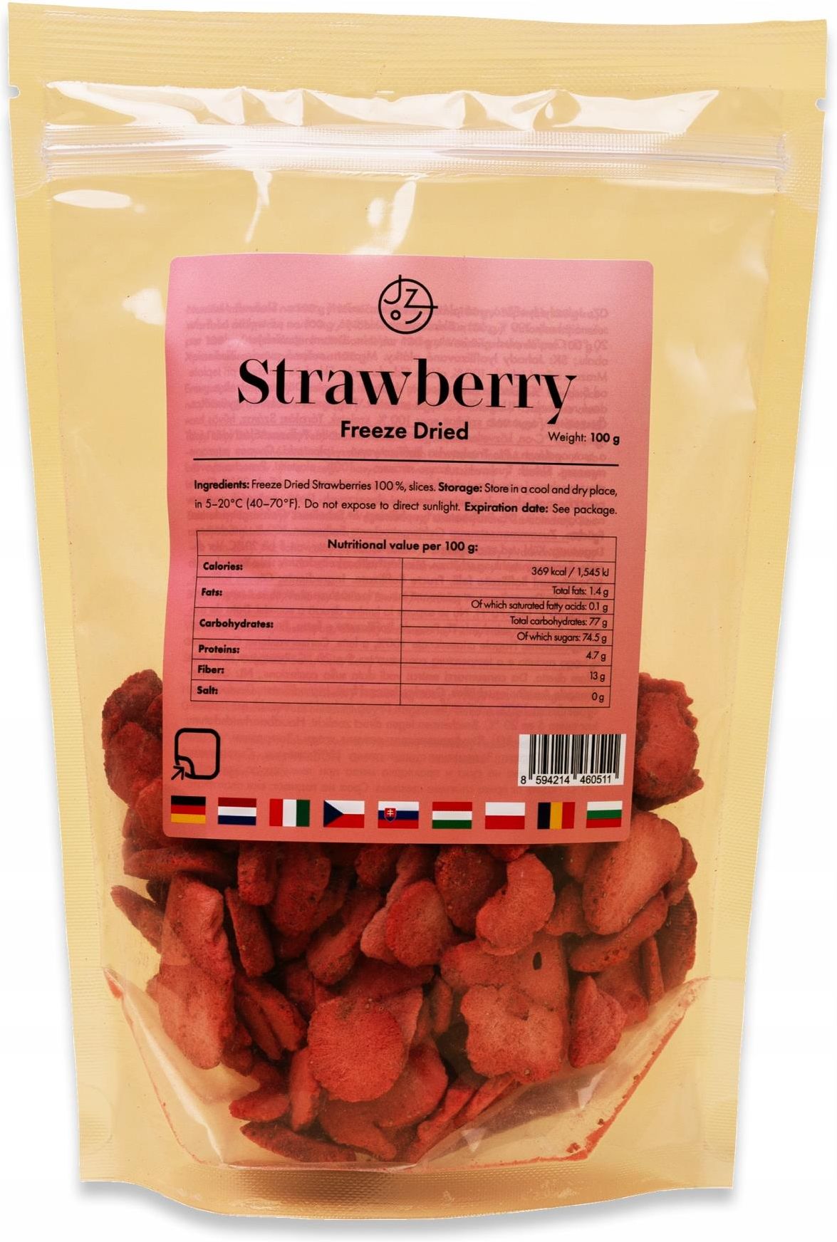 Truskawki liofilizowane suszone plastry bez dodatku cukru naturalne 100 g Truskawki liofilizowane suszone plastry bez dodatku cukru naturalne 100 g Zdrowa, szybka, smaczna i w 100% naturalna przekąska! Owoce, które przetrwają bez szwanku każdą podróż i cały dzień w torebce. Zawsze pyszne, aromatyczne i chrupiące: oto truskawki liofilizowane, czyli suszone mrozem. Dodaj je do smoothie, porannej owsianki, müsli albo schrup jako przekąskę. Bez mycia i obierania. W domu, w pracy, na wycieczce, na placu zabaw z dziećmi. Nawet jeśli zapomnisz ich w plecaku, nie czeka Cię przykra niespodzianka w postaci zgniecionych lub co gorsza spleśniałych owoców. A Twoje dzieci schrupią je bez brudzenia ubrań. Owoce liofilizowane są kruche, a rozpływają się dopiero na języku. Ich naturalną słodycz pokocha cała rodzina. Dlaczego właśnie nasze owoce? 🤔 Długo – bo aż przez 2 lata – utrzymają smak, chrupkość i wartości odżywcze. Chociaż wiemy, że tyle nie wytrzymasz i schrupiesz je dużo szybciej. 😉 Bez sztucznych dodatków. Nie dodajemy do nich cukru ani konserwantów. Jakość na pierwszym miejscu. Pieczołowicie sprawdzamy, jakie owoce trafiają do liofilizacji. W każdym opakowaniu znajdziesz tę samą jakość. Do produkcji 100 g przekąski zużywamy 1 kg świeżych owoców. Opakowanie z funkcją wielokrotnego zamykania. Chrupiesz, kiedy chcesz! Jedz owoce przez cały rok – zdrowo, tanio i praktycznie. Kto nie kocha smaku świeżych truskawek? Ich prozdrowotne właściwości znane są nie od dziś. Zawierają potężne przeciwutleniacze – antocyjany, witaminy A, B, C i E, a także niezbędne minerały. Suszenie mrozem pozwala zachować wszystkie cenne składniki odżywcze. Do liofilizacji wybieramy tylko najlepsze owoce. Współpracujemy ze stałymi dostawcami, dlatego w każdym opakowaniu znajdziesz tę samą jakość. Do produkcji 100 g przekąski zużywamy kilogram świeżych truskawek. Na czym polega liofilizacja? Liofilizacja to proces suszenia owoców przez ich zamrażanie w próżni. W procesie tym usuwane jest aż 99% wody. Owoce zachowują jednak wszystkie wartości odżywcze, smak i aromat. Są również bardziej chrupkie niż owoce suszone w sposób tradycyjny. Truskawki zakonserwowane mrozem są smaczne i pełne witamin i minerałów, bez dodatku sztucznych konserwantów i cukru. Sama natura! Pozostaną smaczne przez 2 lata, chociaż nie wierzymy, że ostaną się u Ciebie tak długo. Owoce liofilizowane to ulubiony produkt rodziców małych dzieci.�🏻 I trudno się dziwić! To praktyczna przekąska pełna witamin, a dzieci uwielbiają jej naturalnie słodki smak. W przeciwieństwie do świeżych soczystych owoców nie pozostawia śladów na ubraniach, więc nawet najmniejsze dzieci mogą najeść się same. Schrup je tak po prostu lub wykorzystaj w kuchni na sto sposobów. Smoothies: truskawki liofilizowane nadadzą Twojemu smoothie taki sam smak i aromat jak świeże, a przy tym nie zajmują tyle miejsca i dużo dłużej zachowują świeżość. No i są dostępne przez cały rok. Zdrowe śniadania: lubisz zjeść rano owsiankę, jogurt lub müsli? Dodaj do nich chrupką posypkę o smaku świeżych truskawek. 🥣 Zdrowe ciasta: dodaj suszone truskawki do ciasta lub deseru, aby uzyskać ciekawy, kwaskowaty smak i intensywny aromat. 🍰 Przekąski: chrup, kiedy tylko zechcesz! Woreczek nadaje się do wielokrotnego zamknięcia. A po całym dniu noszeniu w plecaku lub torebce suszone truskawki będą prezentować się lepiej niż poobijane owoce, pokruszone krakersy i nieświeże warzywa. 🍟 Zdrowe lody: pokruszone truskawki liofilizowane z powodzeniem zastąpią czekoladową posypkę na deserze lodowym, dodając mu kwaskowatego aromatu i intensywnego zapachu truskawek. 🍨 Herbaty: gustujesz w rozgrzewających naparach owocowych? Wrzuć kilka suszonych truskawek do dowolnej herbaty. 🫖 Syropy: lubisz przygotowywać domową lemoniadę? Użyj owoców liofilizowanych! Wystarczy je zblendować i rozgotować z cukrem, aby powstał syrop gotowy do rozcieńczenia wodą. 🥛 Domowa maseczka: najadłaś się do syta? Z reszty truskawek liofilizowanych możesz zrobić domową maseczkę odżywiającą skórę. Zblenduj owoce na proszek i dodaj odrobinę jogurtu naturalnego i miodu. 💆🏻 Dodaj owoce liofilizowane do swojej diety i zapewnij sobie codzienną porcję witamin. No i od teraz możesz jeść truskawki przez okrągły rok. 😎 16 powodów, dla których warto włączyć owoce liofilizowane w codzienną dietę Intensywny smak i aromat świeżych truskawek Tańsze niż świeże owoce Wszystkie wartości odżywcze zachowane na dłużej Obfitują w witaminy Idealne w podróży i na wycieczki Praktyczna torebka do wielokrotnego zamknięcia Do suszenia wybieramy najładniejsze owoce Mrozimy dorodne i dojrzałe, ale nieprzejrzałe owoce Ulubiona przekąska dla dzieci Bez dodatku cukru Odpowiednie dla osób na diecie raw Dłuższy okres przydatności niż u świeżych owoców – aż 2 lata Bogaty aromat i niesamowita chrupkość Bez sztucznych dodatków, konserwantów i oleju – 100% owoców Idealny dodatek do smoothies, jogurtów i owsianek Zdrowa posypka lub słodzik do ciast i deserów O marce Jemy Zdrowo Pochodzimy z Czech. Nasza historia zaczęła się w 2015 roku – od pomysłu na aplikację z przepisami na zdrowe dania. Później pojawiły się e-booki, a następnie tradycyjne książki kucharskie, których do tej pory wydaliśmy już 40 w 9 krajach. Nasze książki w języku polskim znajdziesz m.in. Tworzymy przepisy na zdrowe i zbilansowane, a przy tym smaczne i łatwe w przygotowaniu dania. W dbaniu o zdrowie ważne jest dla nas podejście holistyczne: od ruchu, przez odżywianie, aż po dbanie o zdrowie psychiczne, dobry sen i równowagę hormonalną. Mamy nadzieję, że będziesz towarzyszyć nam w tej drodze.