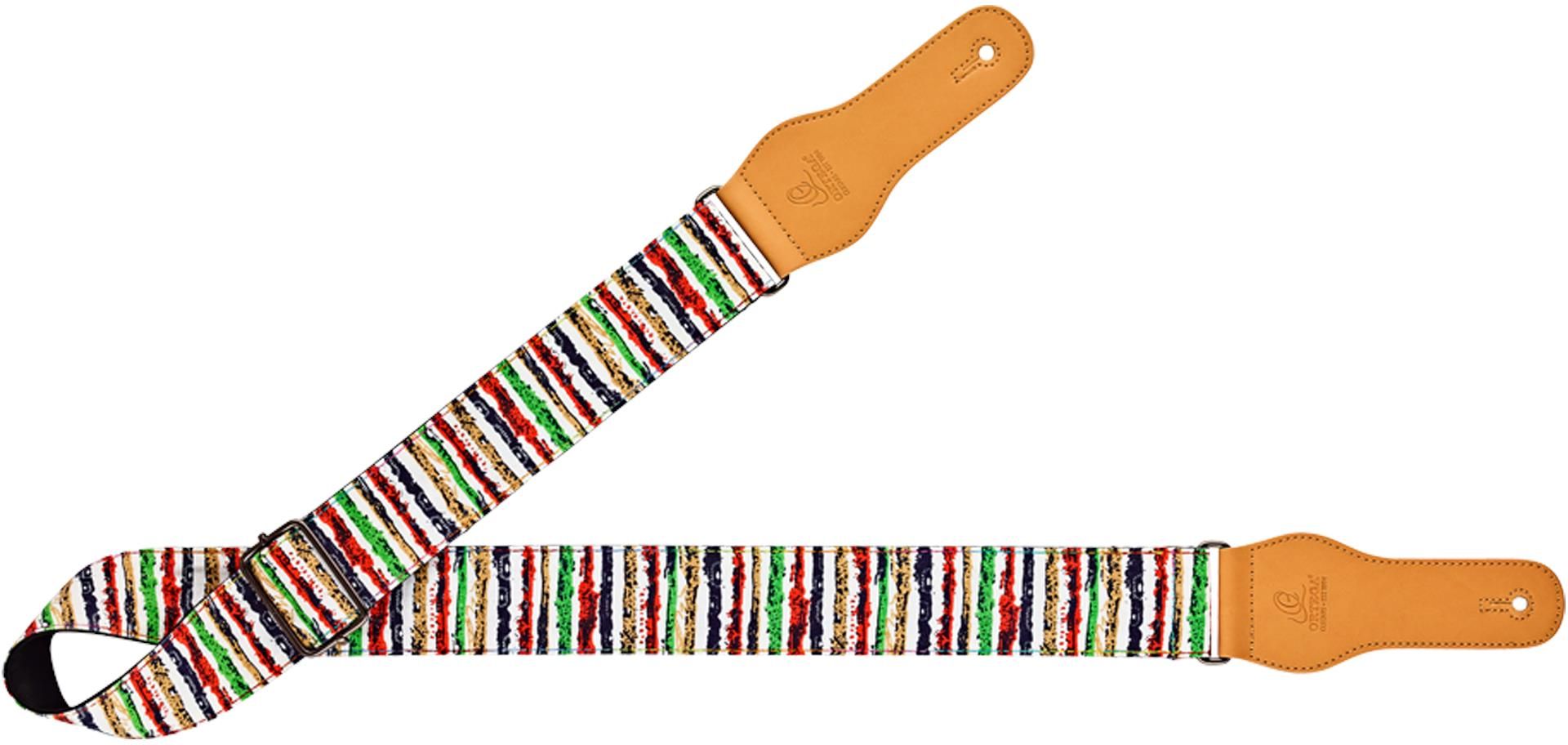 The CREATIVE SERIES – made from 100% cotton comes for guitar in 49 mm (1,93") width and up to 1580 mm (62,2") length and for ukulele in 37 mm (1,45") width and up to 1390 mm (54,33") length. The strong but flexible faux leather ends fit all types of strap pins and feature an embossed logo. Available in seven different motifs. Pattern: striped