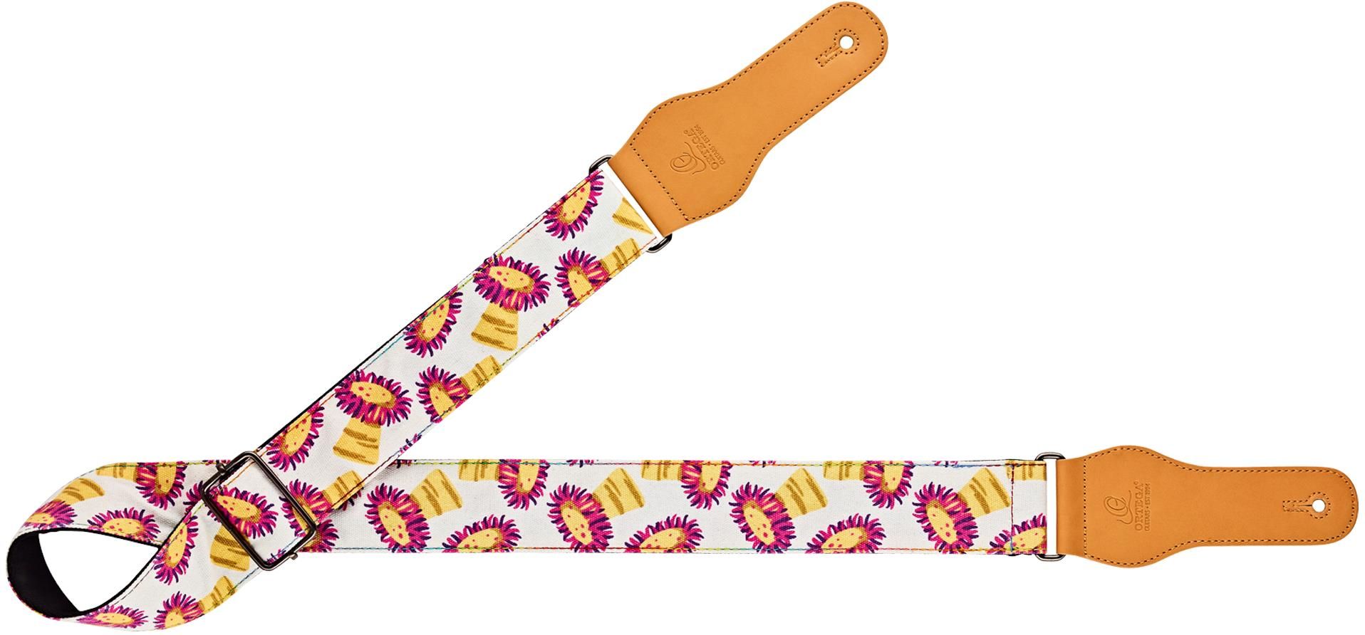 The CREATIVE SERIES – made from 100% cotton comes for guitar in 49 mm (1,93") width and up to 1580 mm (62,2") length and for ukulele in 37 mm (1,45") width and up to 1390 mm (54,33") length. The strong but flexible faux leather ends fit all types of strap pins and feature an embossed logo. Available in seven different motifs. Pattern: 70's plats